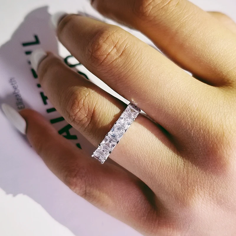 Оригинальный дизайн 925 стерлингового серебра принцесса циркониевые свадебные пояса вечности класса люкс для палец кольца для женщин ювелирные изделия LR4816S
