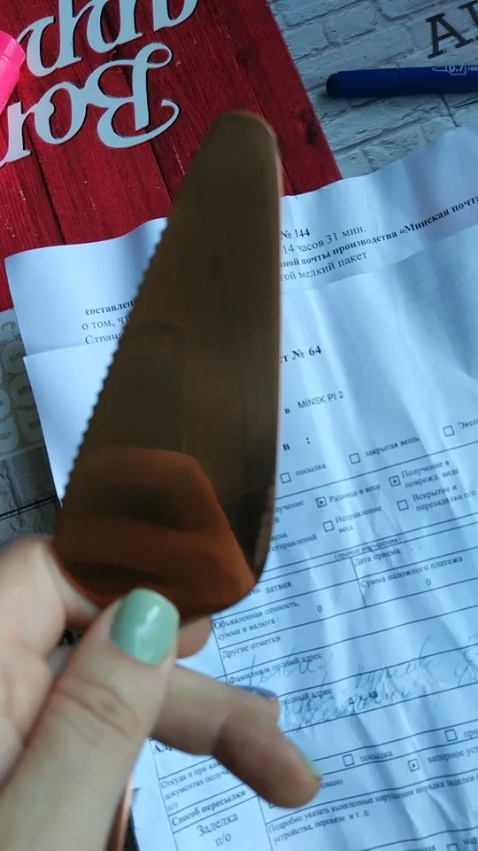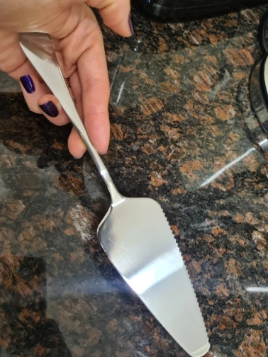Удобная нож-лопатка для торта, пиццы! Не прогадала! Уже опробовала - намного удобнее, чем возиться с двумя ножами! В Нижний Новгород доставили довольно быстро. Упакована хорошо. Описанию соответствует. Рекомендую! Спасибо продавцу!