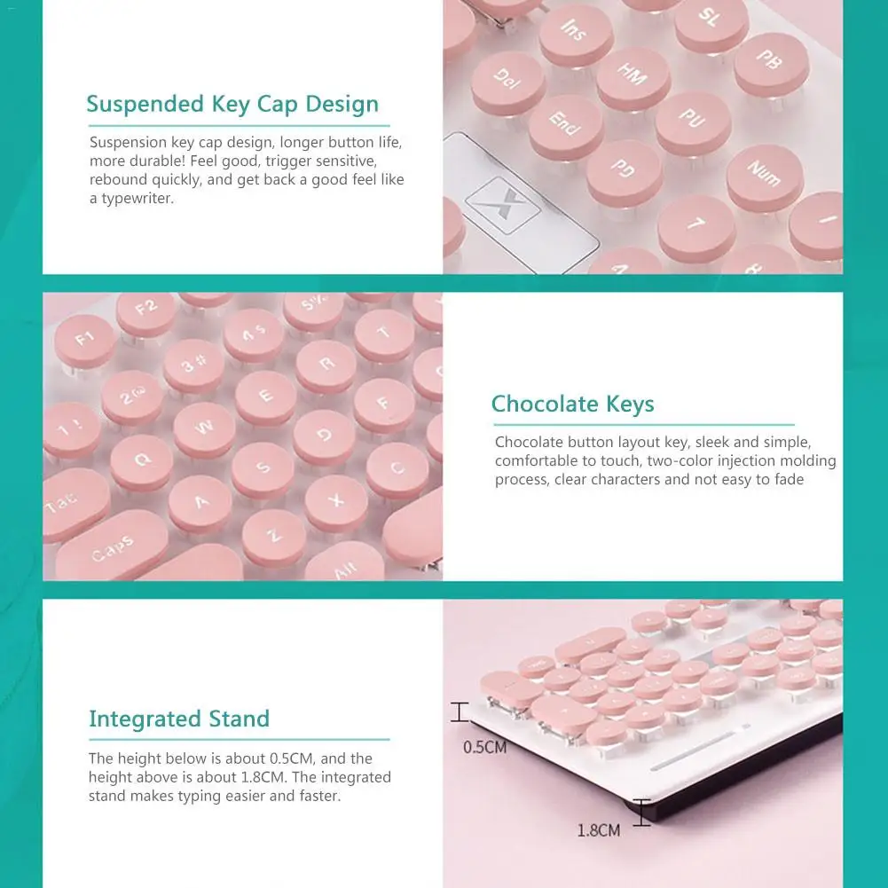 Проводная клавиатура и мышь в стиле стимпанк, портативная игровая клавиатура с круглой крышкой, набор с мультимедийными кнопками, в стиле ретро