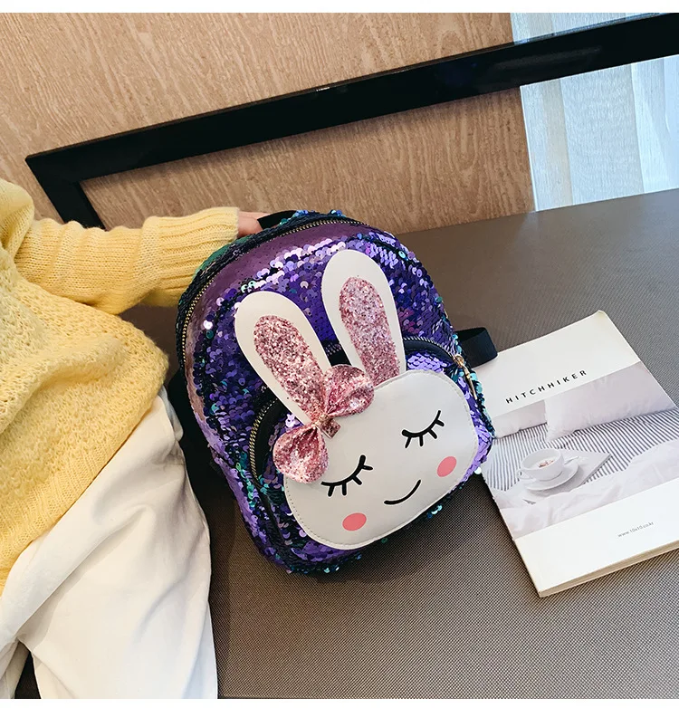 Школьные ранцы для девочек с 3D рисунком, маленькая милая сумка с кроликом, детский рюкзак на плечо с блестками и лазерным узором, женский рюкзак