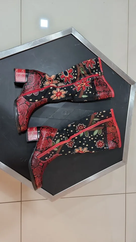 Женские ковбойские ботинки в стиле пэчворк, Винтажные ботинки до середины икры из натуральной кожи, богемная обувь на осень