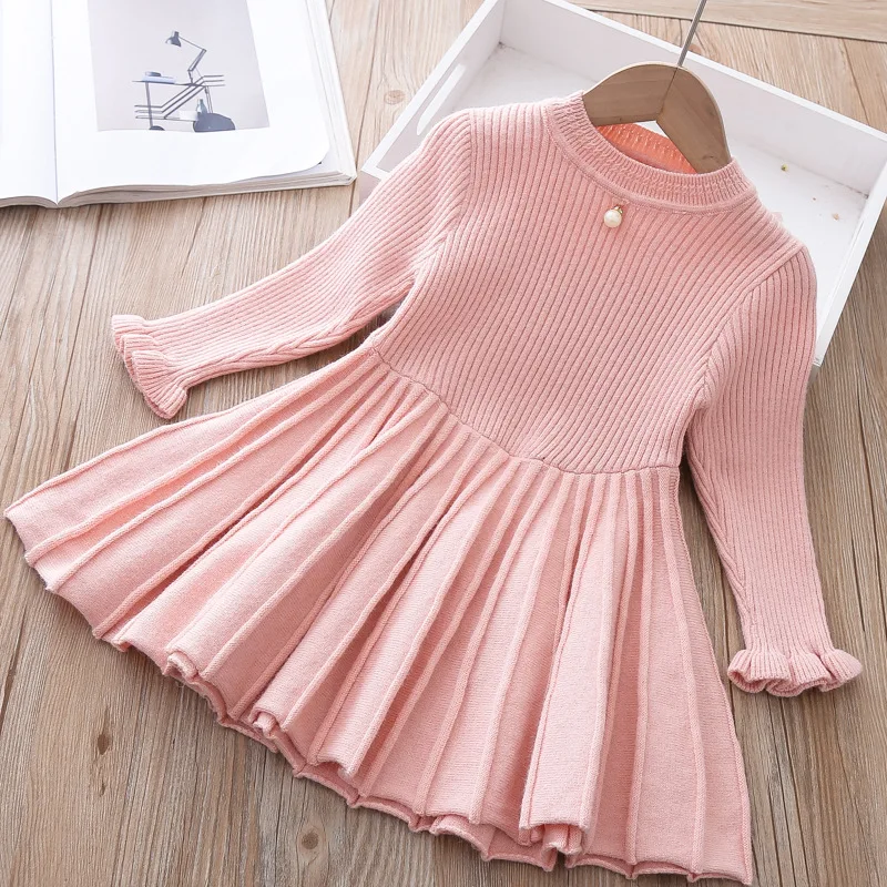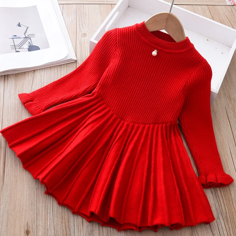 Теплое платье для новорожденных девочек Милая осенне-зимняя новая вязаная одежда для малышей Топы для малышей, рубашки для девочек, шерстяные рождественские платья
