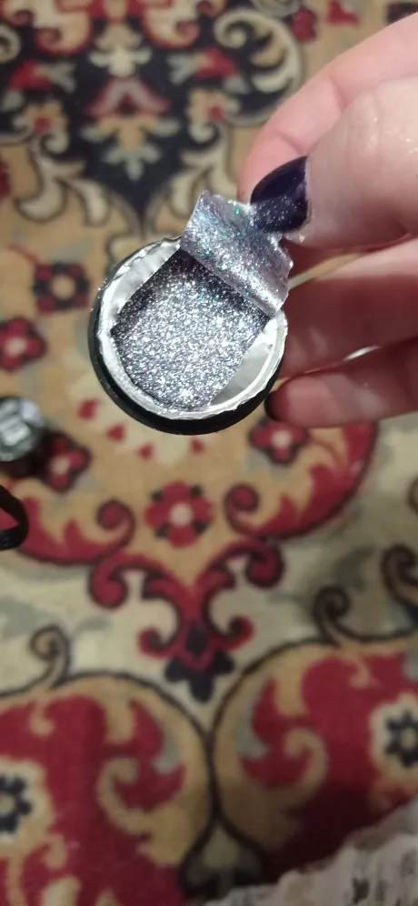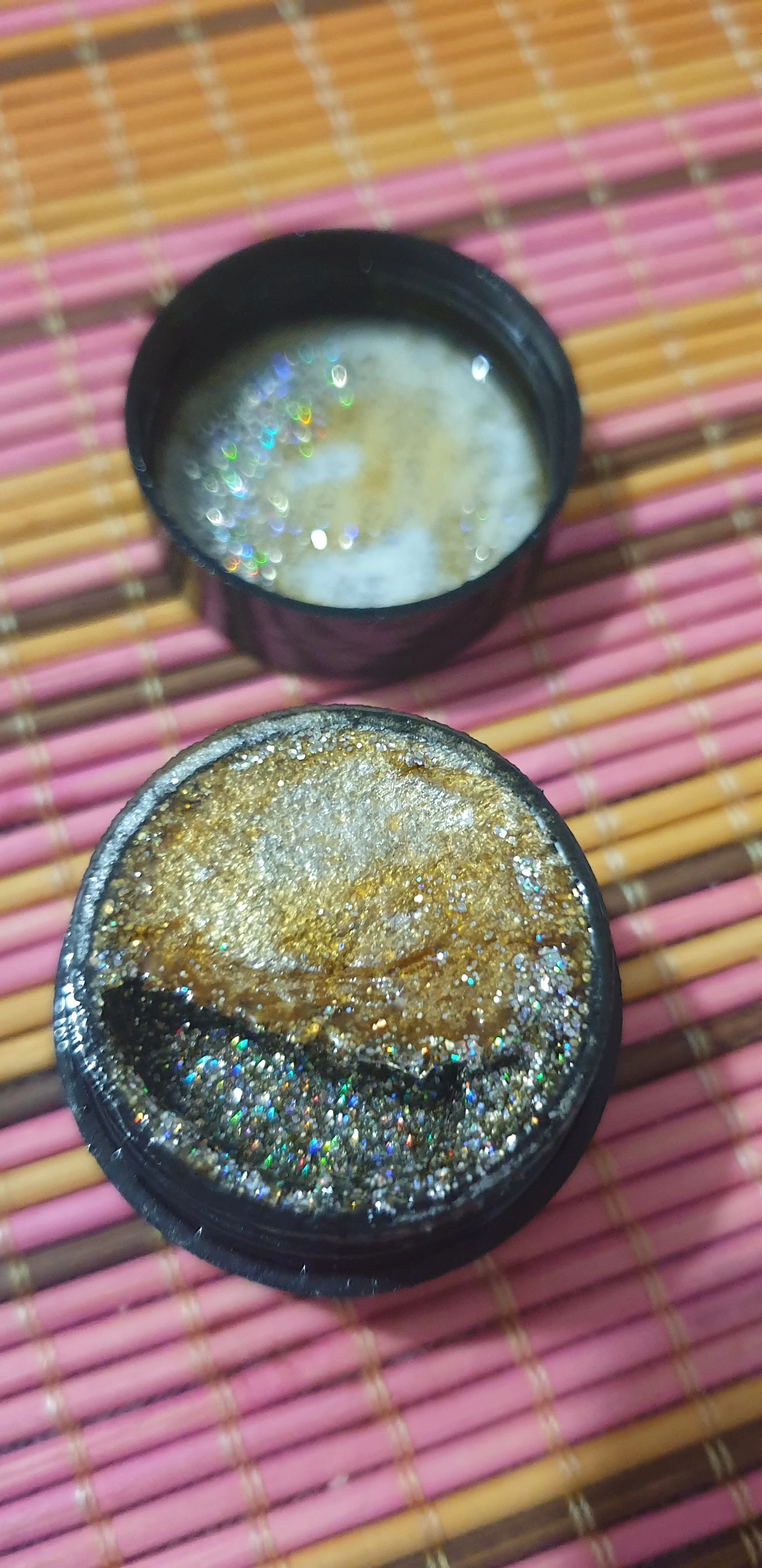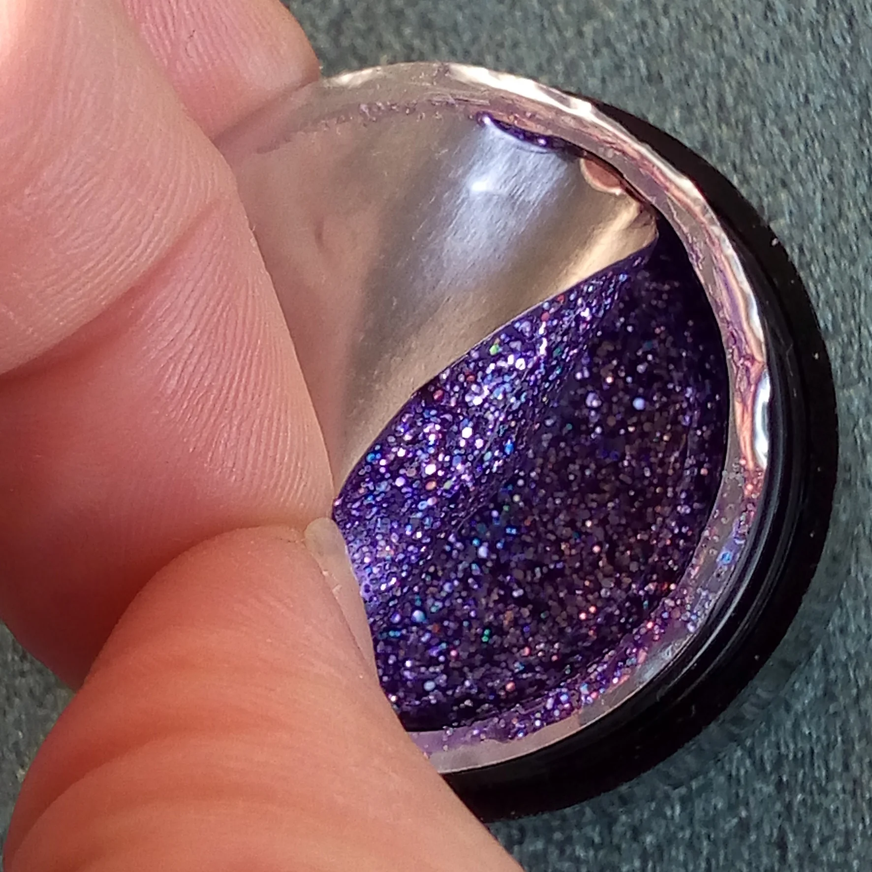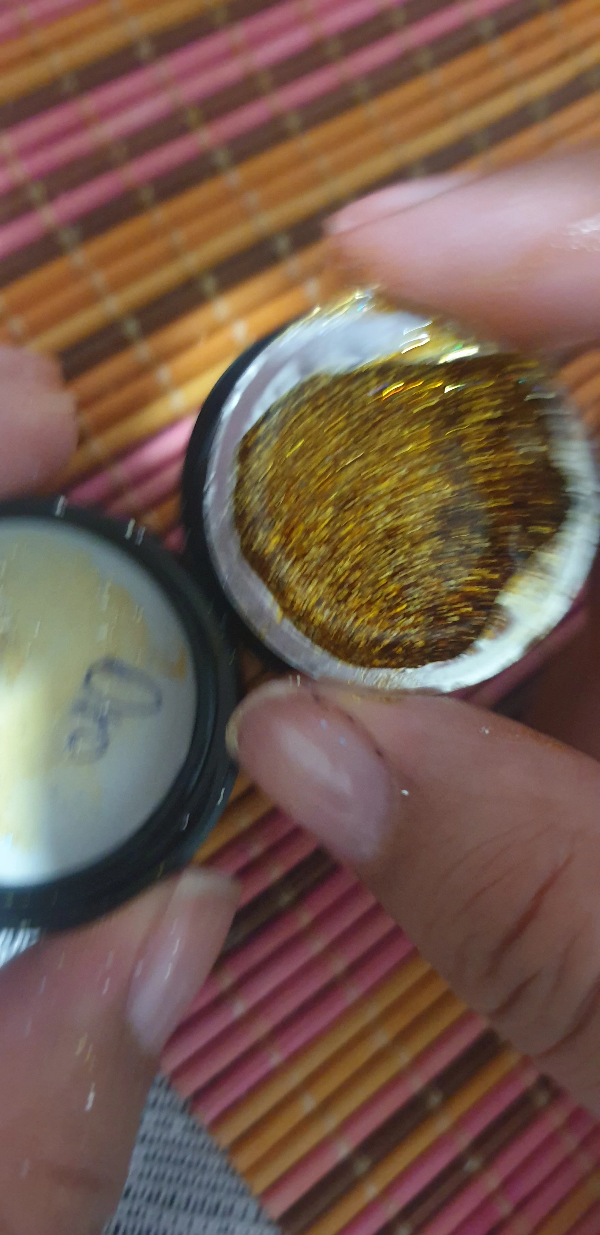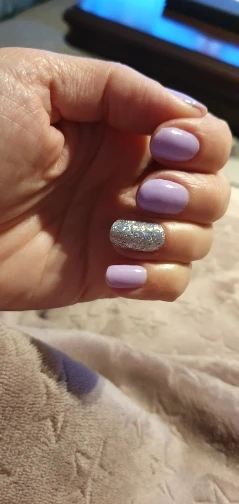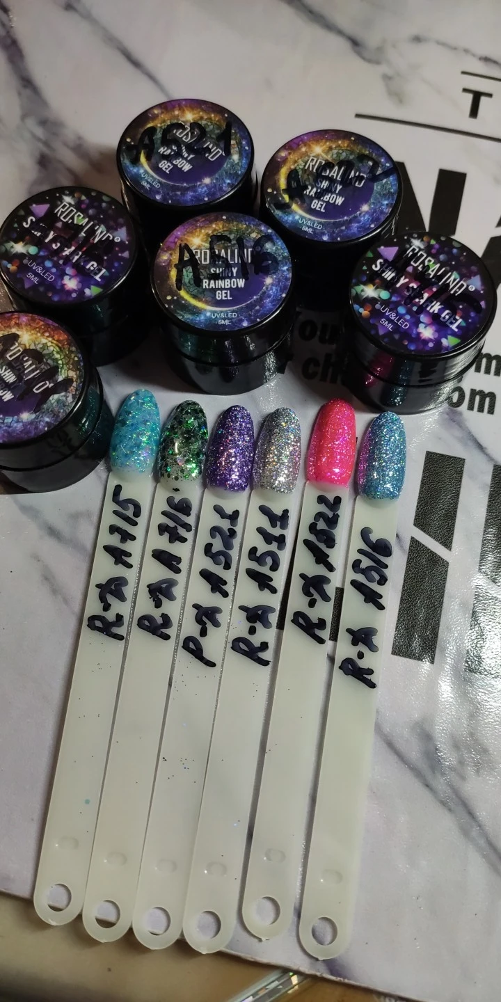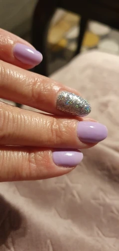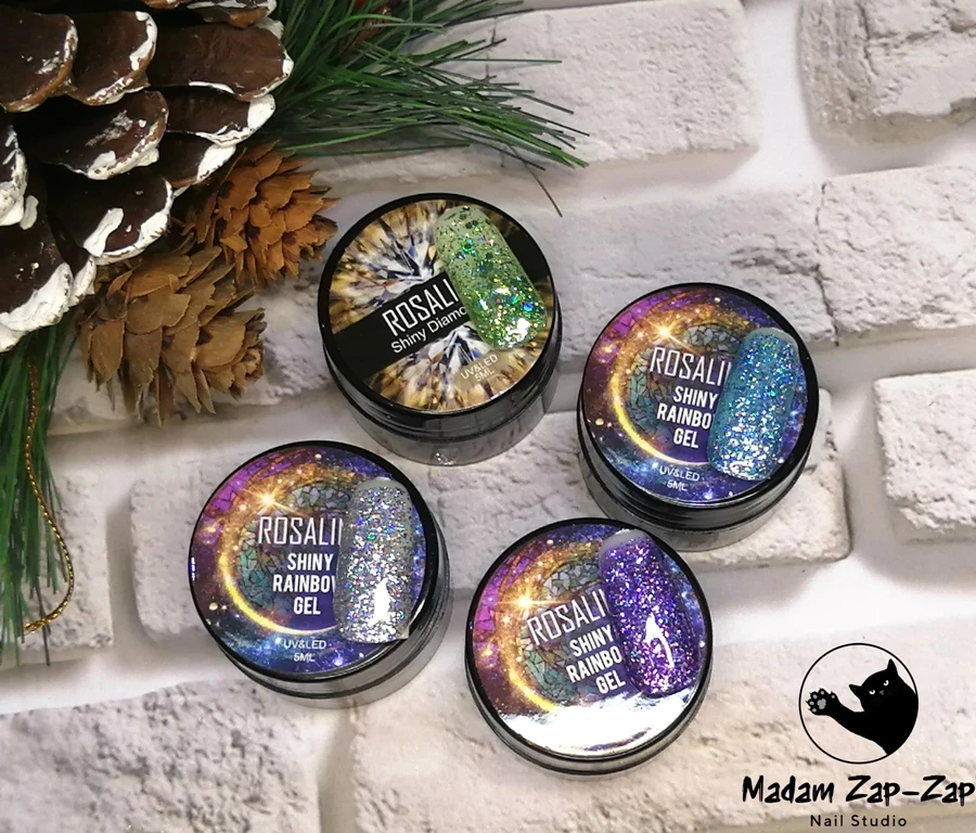 Яркий радужный блеск. Можно накладывать на любой лак, цвет не меняет.