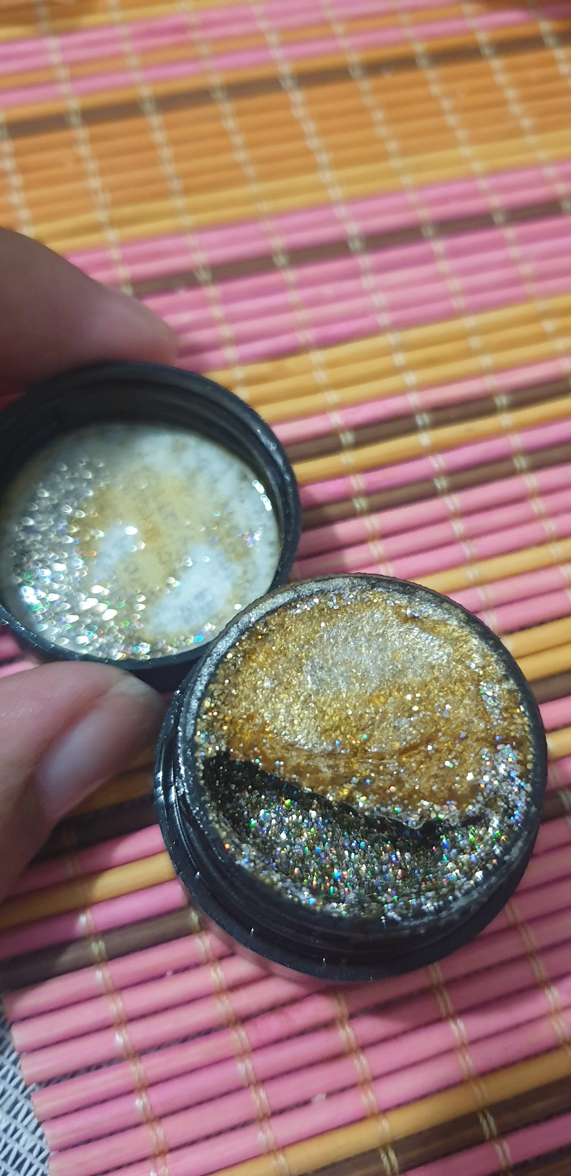 Заказ пришёл быстро, все баночки полные, товар упакован хорошо. Цвет просто бомба, фотография не передаёт весь спектр перелива,плотность очень хорошая, очень довольна. Продавец умничка, всем советую, буду у него заказывать ещё.