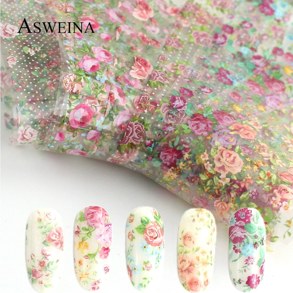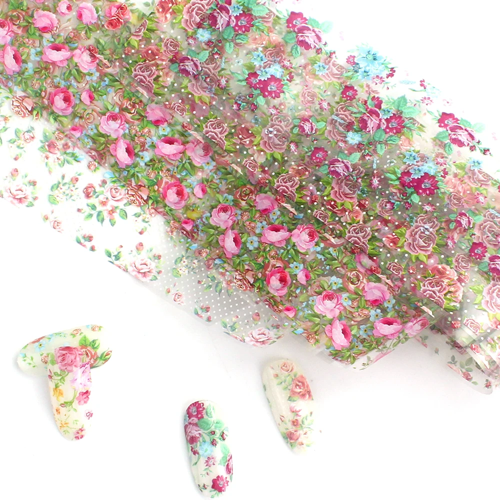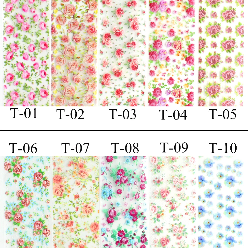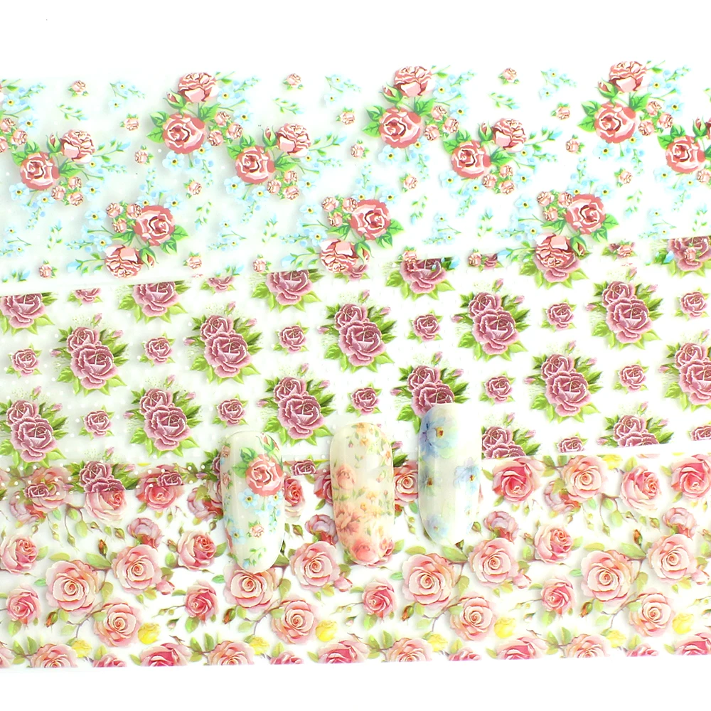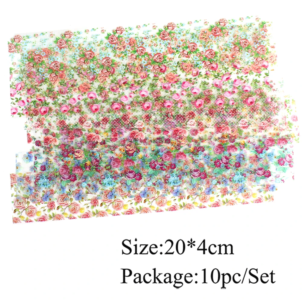 10 шт. Голографическая фольга для ногтей слайдер смешанный цветок набор дизайнов переводные наклейки для ногтей Цветочная печать маникюрные наклейки художественные украшения