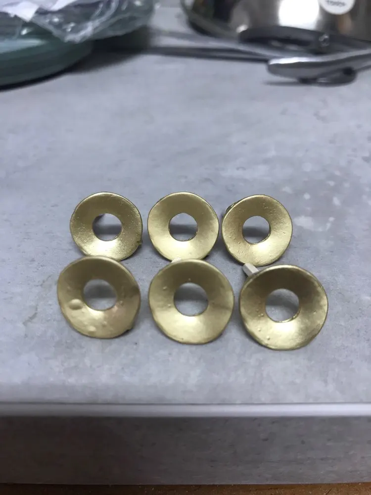 Они действительно красивые, среднего размера. Они не блестящие. Средний размер. Хорошо упакованы, они прибыли очень быстро. Было бы здорово, если бы вы пришли с вашим траншером. Я надеюсь, что они не темнеют и не теряют цвет.