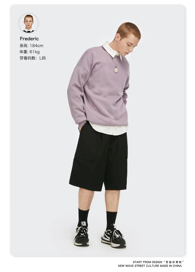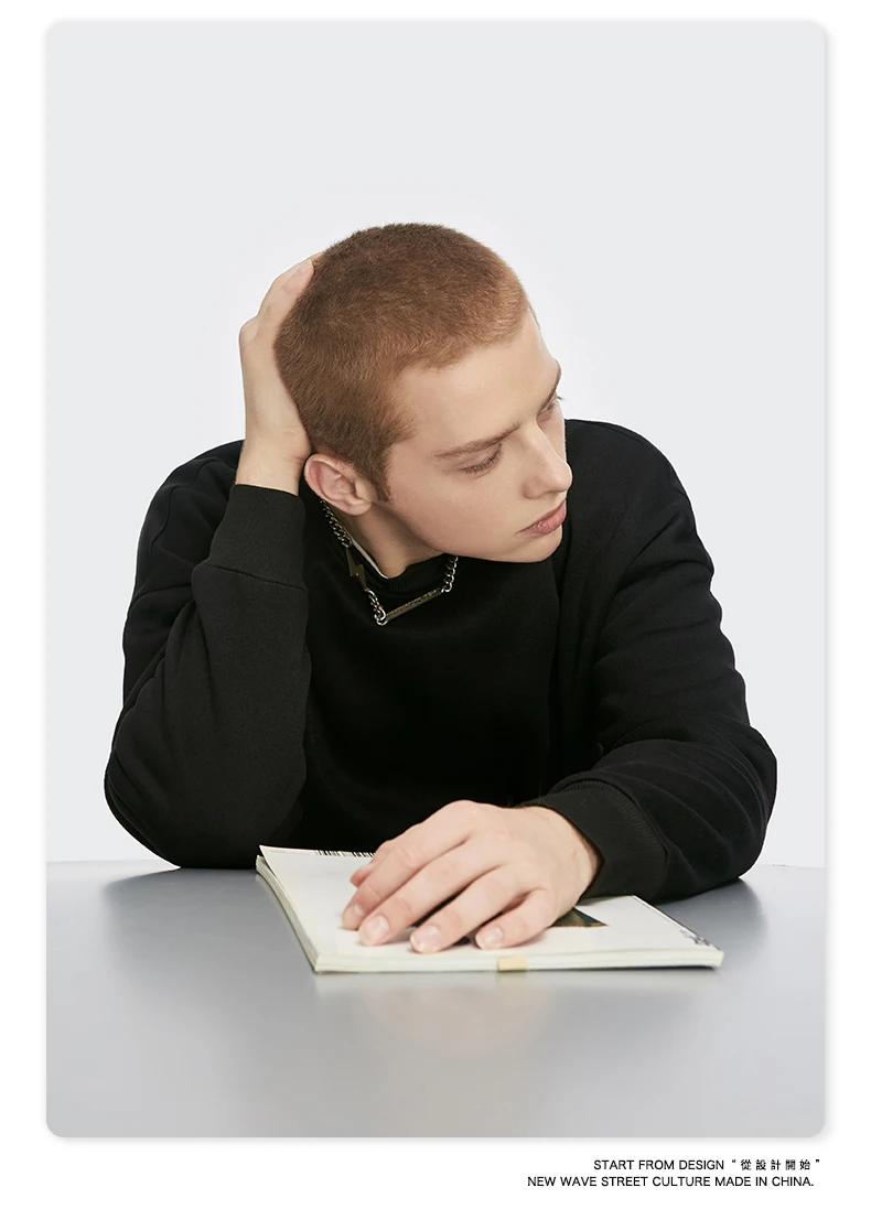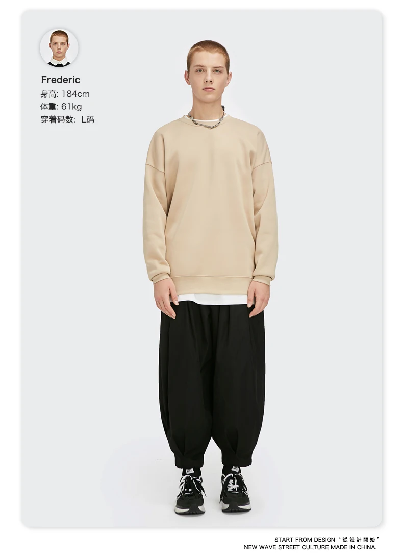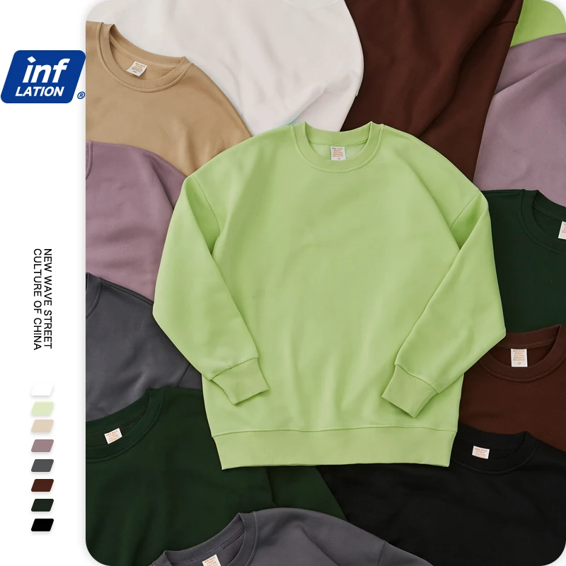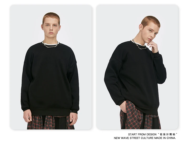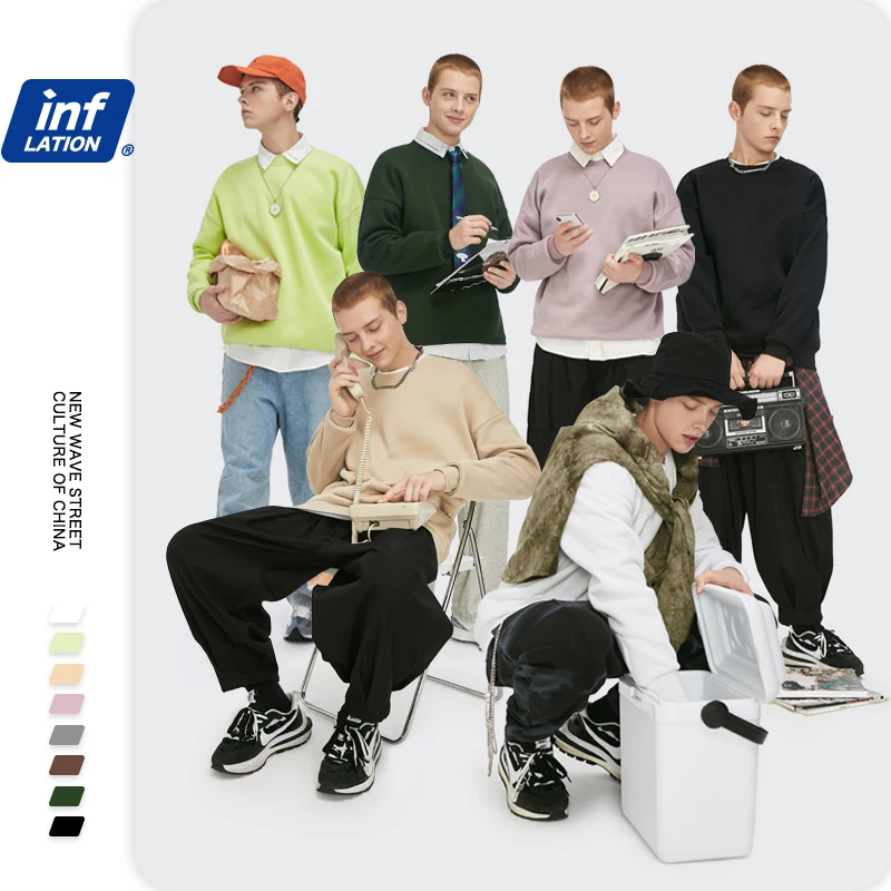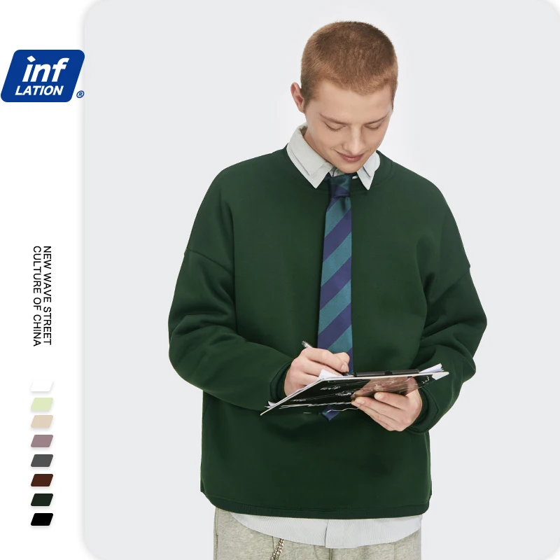 Свитшот мужской INFLATION, однотонный, с круглым вырезом, осень 2020, тонкий, мягкий, большого размера, базовый черный пуловер, 168W