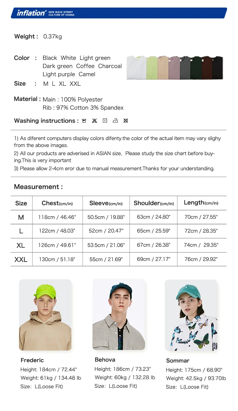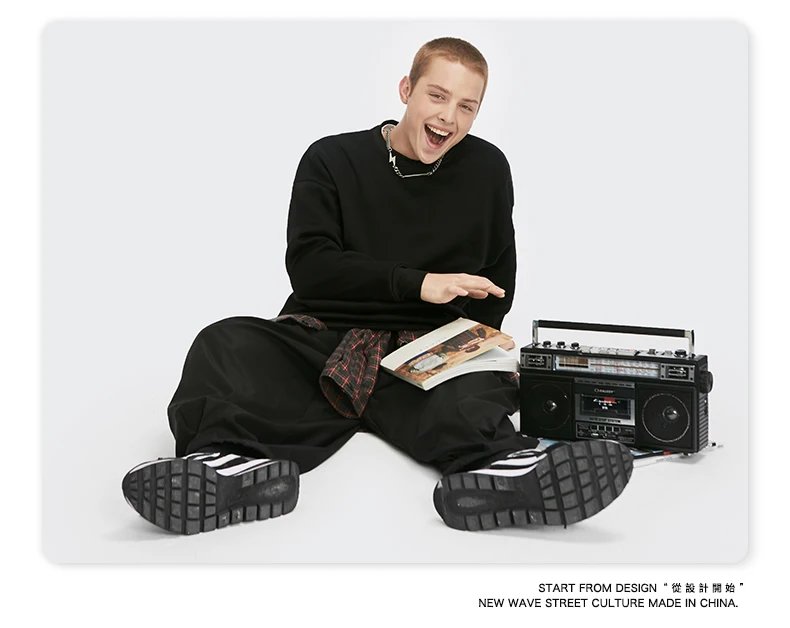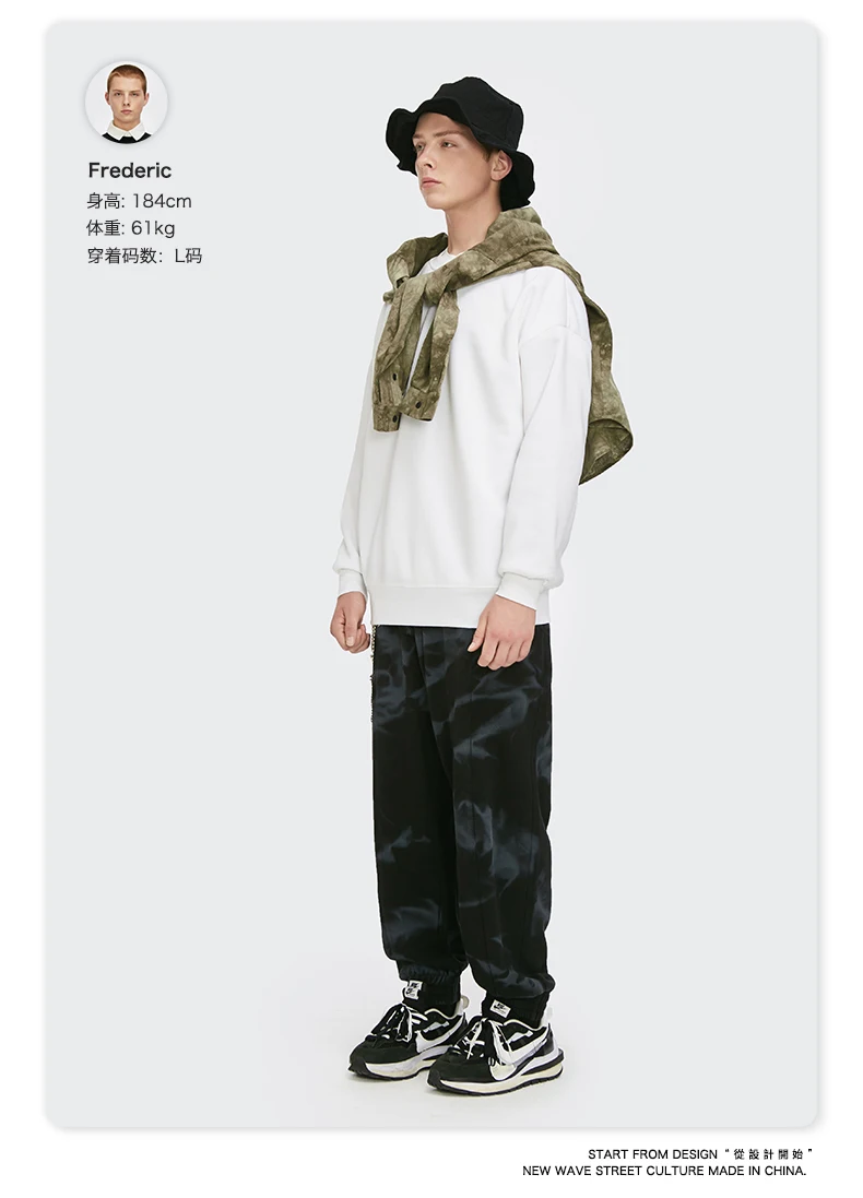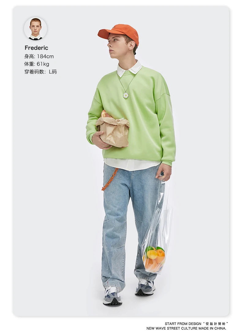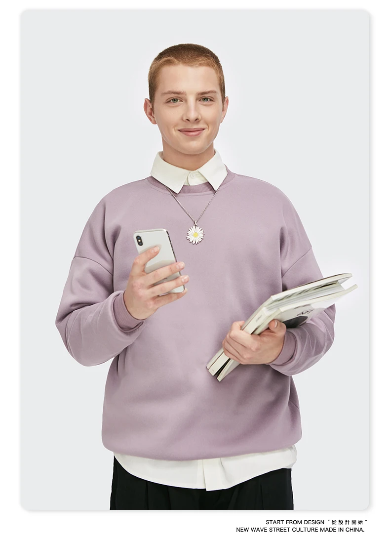 Свитшот мужской INFLATION, однотонный, с круглым вырезом, осень 2020, тонкий, мягкий, большого размера, базовый черный пуловер, 168W