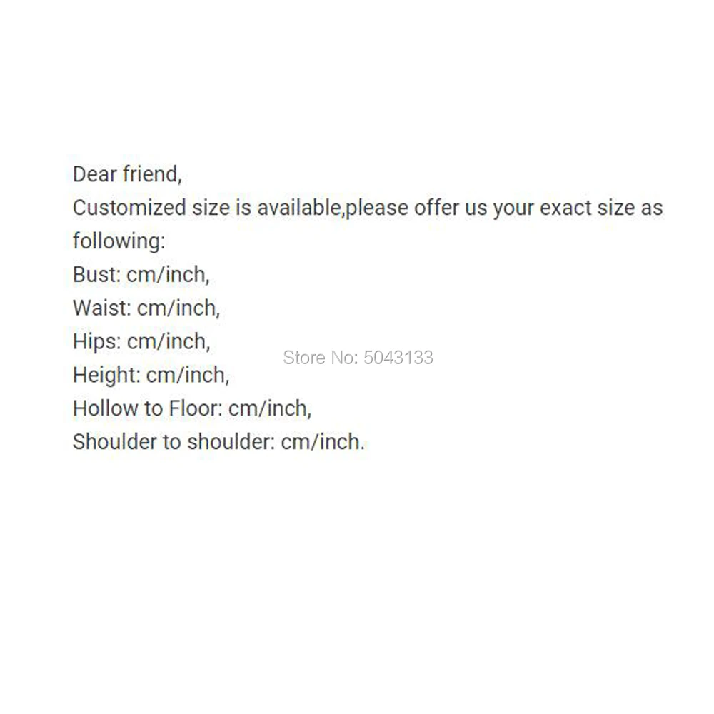 5. Мы настоятельно рекомендуем, чтобы ваши измерения были сделаны профессионалом перед покупкой любого платья онлайн. Пожалуйста, следуйте инструкциям по измерениям и тщательно Измерьте себя.