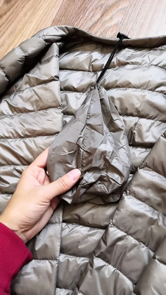 Пуховик хороший, качественный, очень тонкий и легкий, купила в качестве подклада под осеннее пальто. До этого покупала такой же жилет, так что толщина изделия была ожидаема. Планировала взять размер XL, ориентируясь на размерную сетку на сайте, но решила уточнить у продавца и мне посоветовали по весу и росту размер 2XL и к сожалению, зря послушалась - оказался большим, на ОГ 96 вполне бы хватило XL. Доставка очень быстрая, две недели до Новосибирска. Продавец вежливый, отвечает на вопросы оперативно, в подарок положили резинку для волос и с пуховиком идет маленький чехольчик.