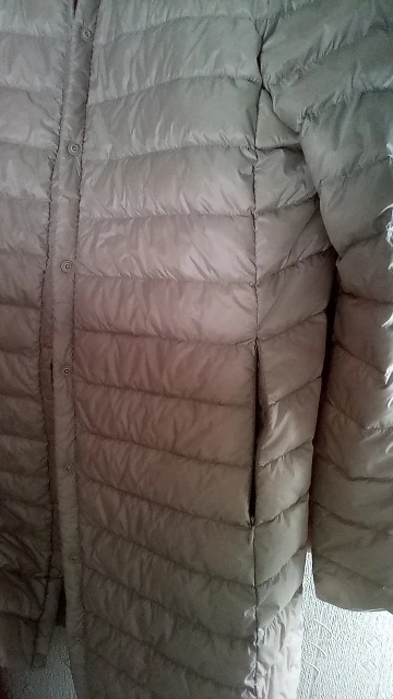 отличный пуховичок, аналог Уникло, я не вижу отличий. На 48 российский, 3 размер груди и рост 160 см размер xxxl сел идеально. смотрится именно как пальтишко, попу прикрывает хорошо, цвет очень приятный светлый. Я довольна очень, в комплекте мешочек.