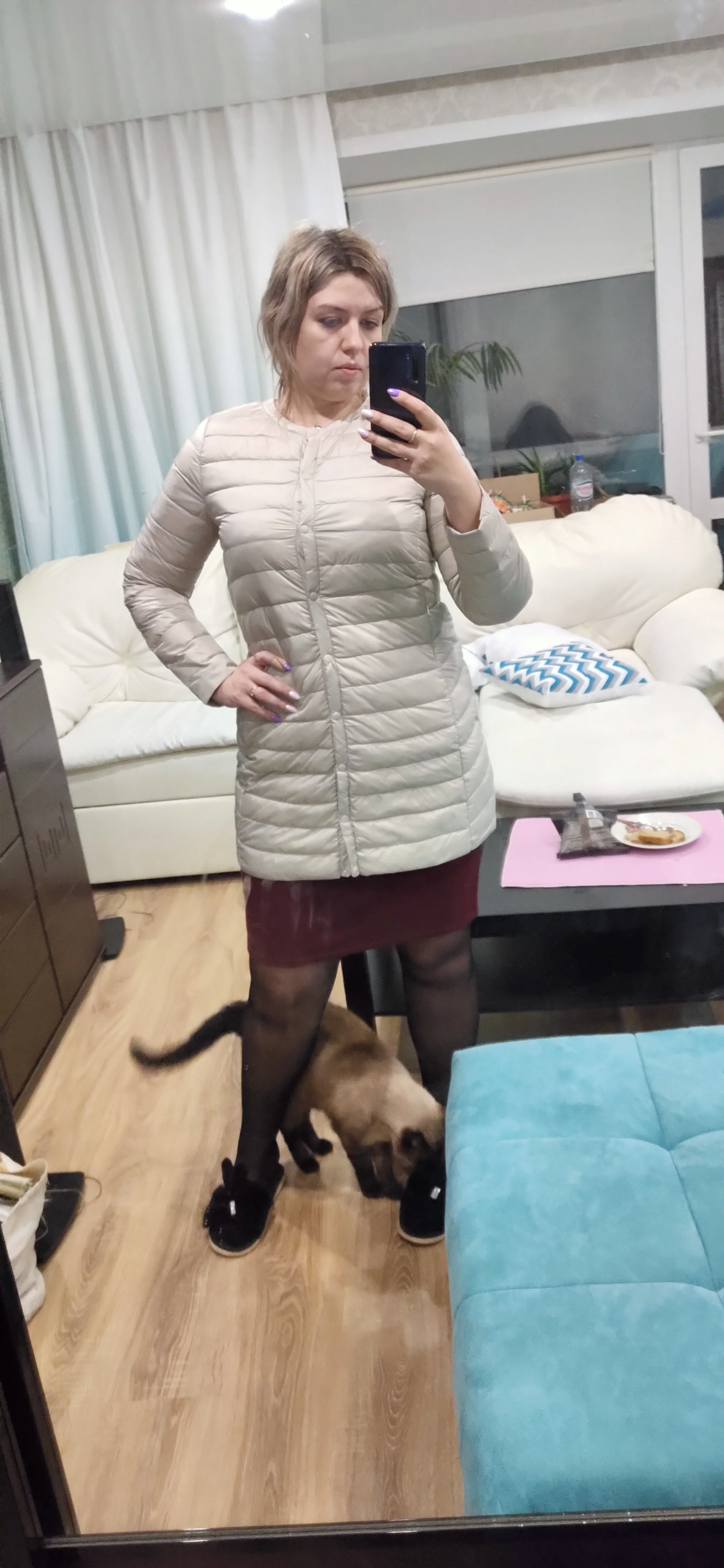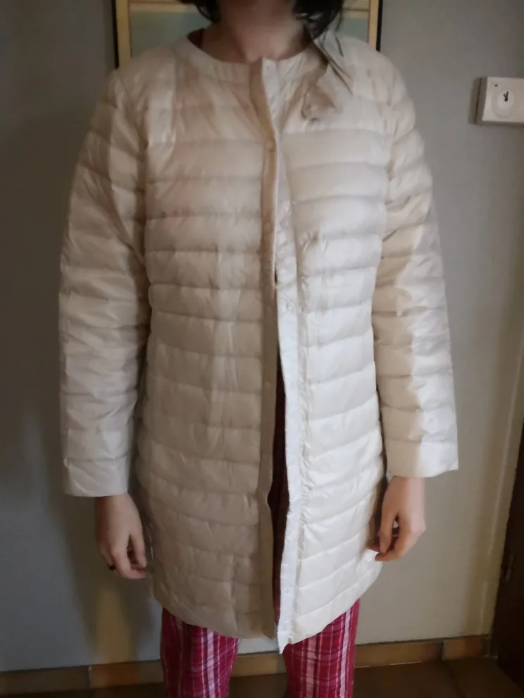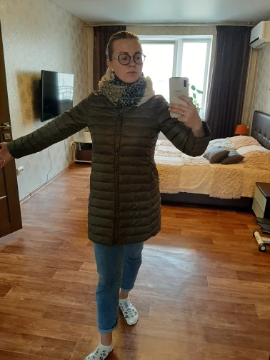 Брала в качестве куртки-поддевки под пальто. Но пуховик реально клёвый, буду носить весной. Красиво смотрится и цвет нравится. Что-то там писали про запах, мой не пахнет. Размер подошёл. Обычно ношу S и реже М. Но этот L мне по размеру. И даже тонкий свитерок можно поддеть. Ждала около месяца, после прибытия на таможню не отслеживался.