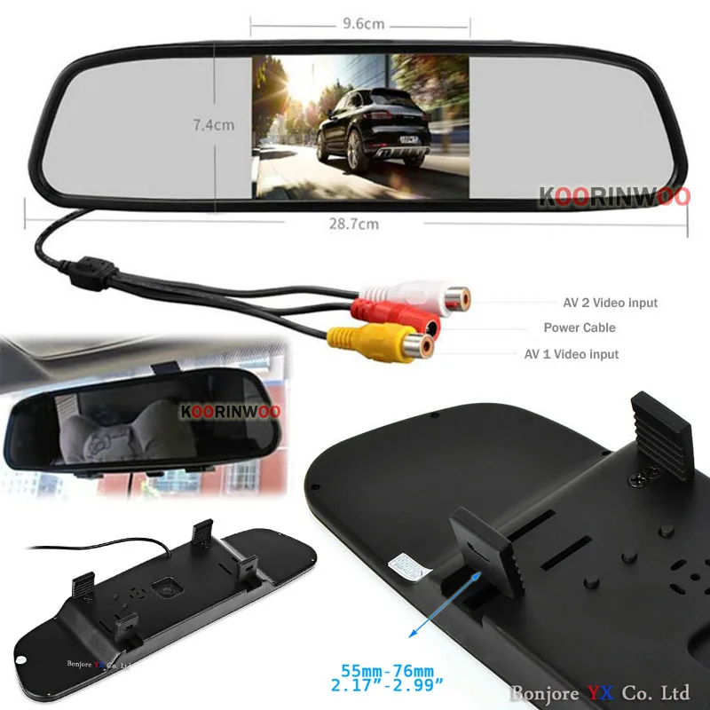 4,3 "цветной TFT ЖК-монитор заднего вида автомобиля с 2 видео входом, отлично работает с автомобильными камерами заднего вида.