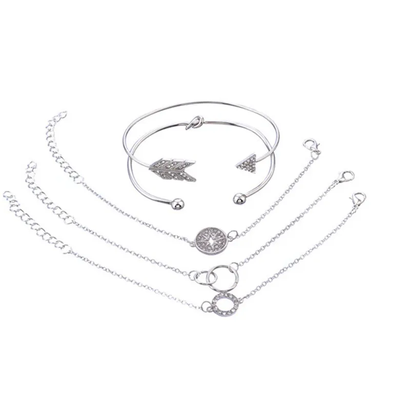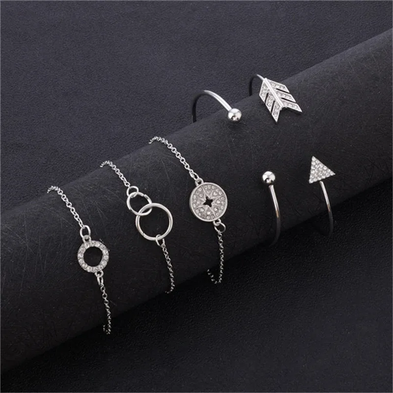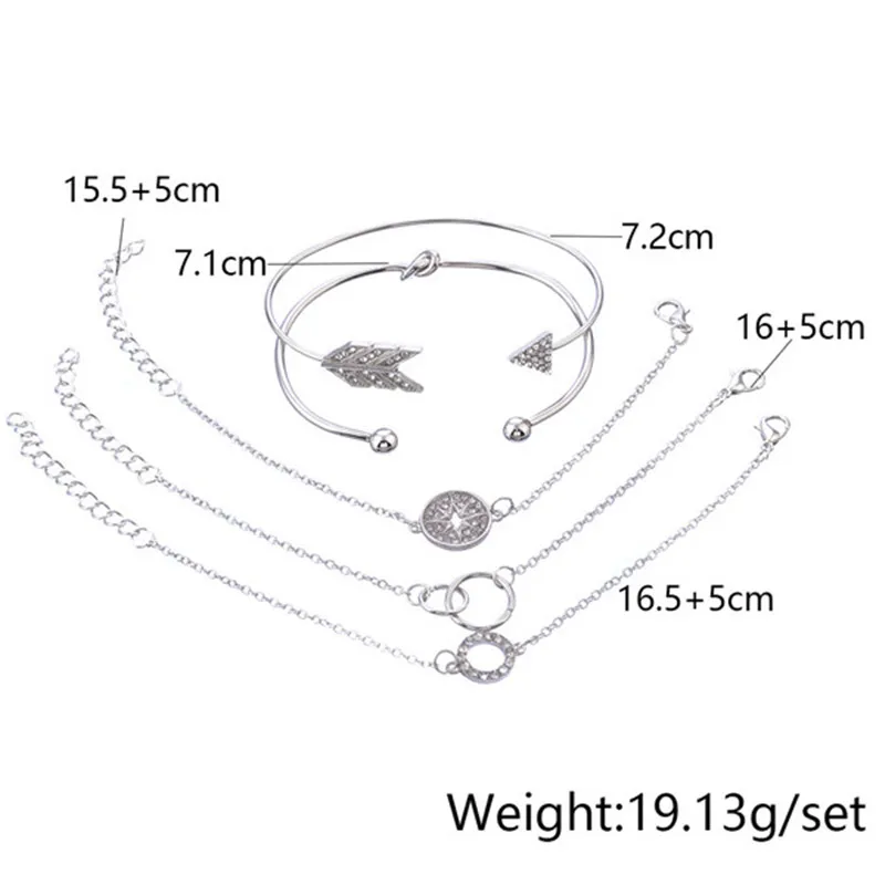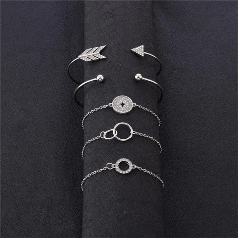 LETAPI 5 шт.компл. Кристальный компас с богемной стрелкой круглая узелковая Геометрическая цепочка Регулируемый многослойный женский браслет