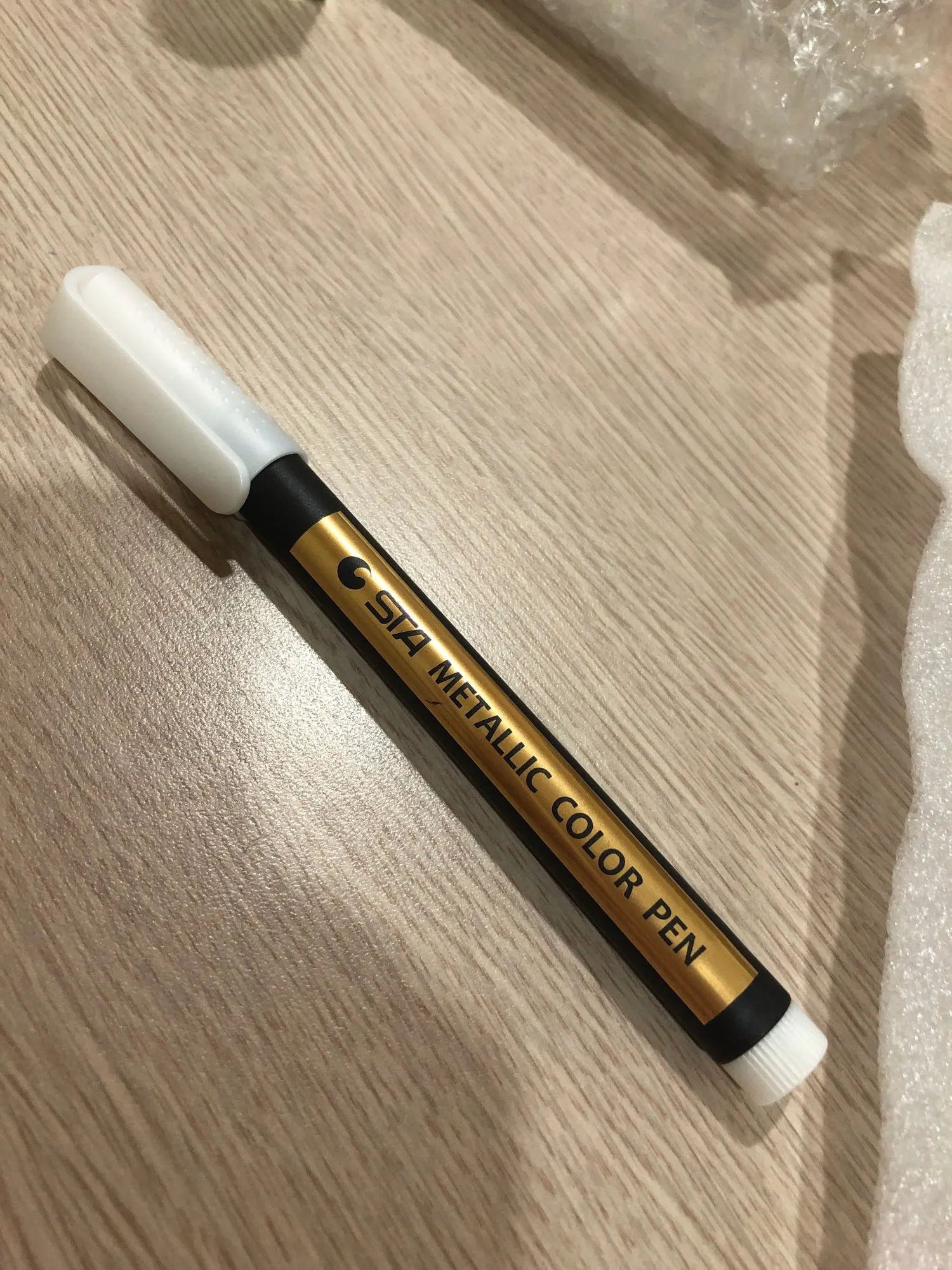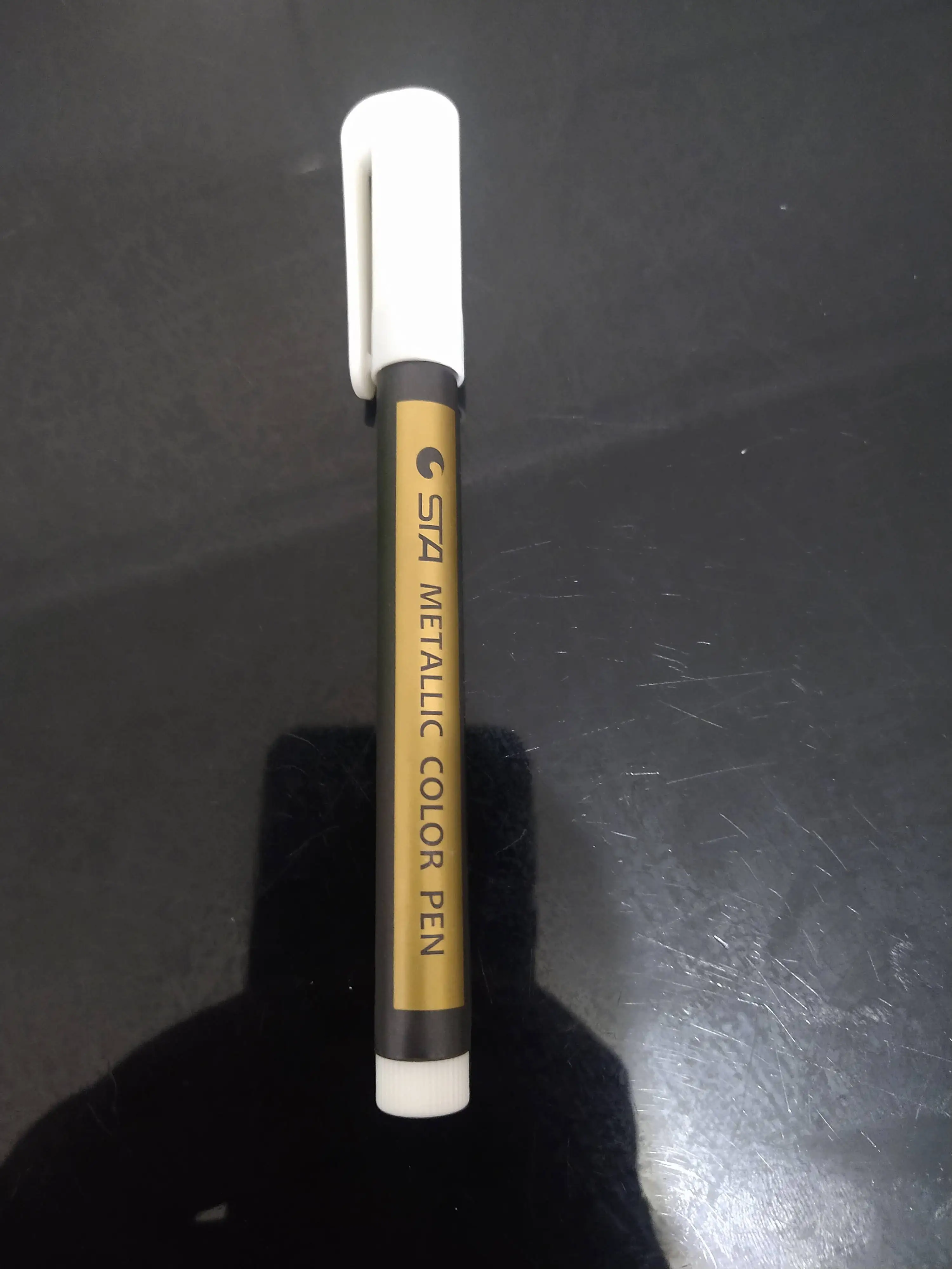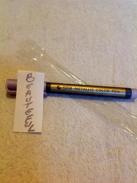 It´s an authentic gold marker pen, on paper you can see the beautiful golden color, we love it!