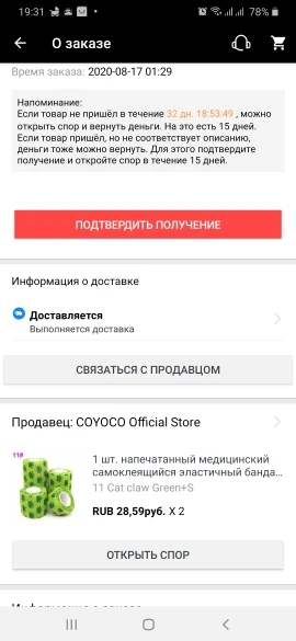 Продавец отправил заказ спустя 2 (!) часа после оплаты,посылка прибыла через 14 дней. Качественные,яркие бинты,отлично крепятся.К посылке прилагался подарок-шнурок для телефона.Продавцу спасибо за оперативность и высококачественный товар.Рекомендую!