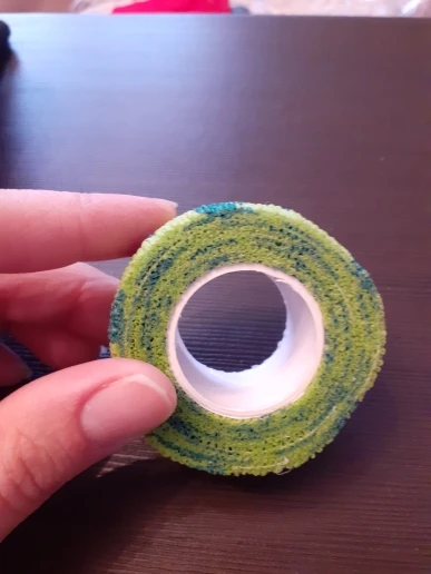 Бандаж пришел быстро. Всё как в описании. Держится сам за себя, но не крепко. Нужно побольше наматывать иначе отклеится