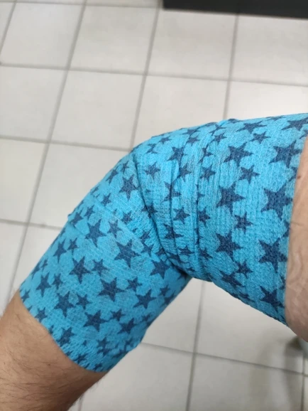 Отличные бинты ! Очень удобно фиксировать на сгибах . Можно использовать многократно !