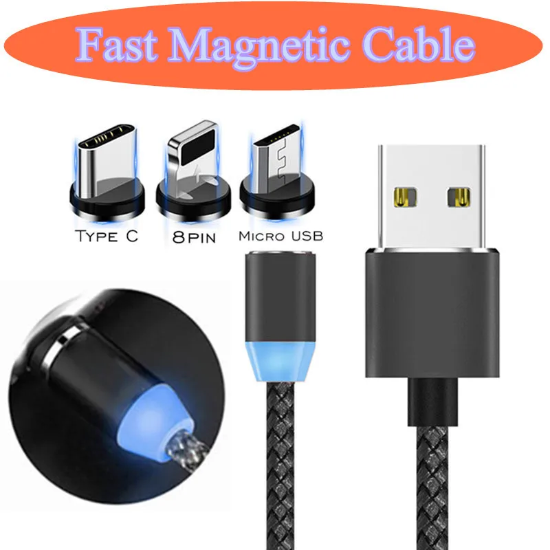 Быстрая зарядка светодиодный магнитный usb-кабель для iphone huawei...