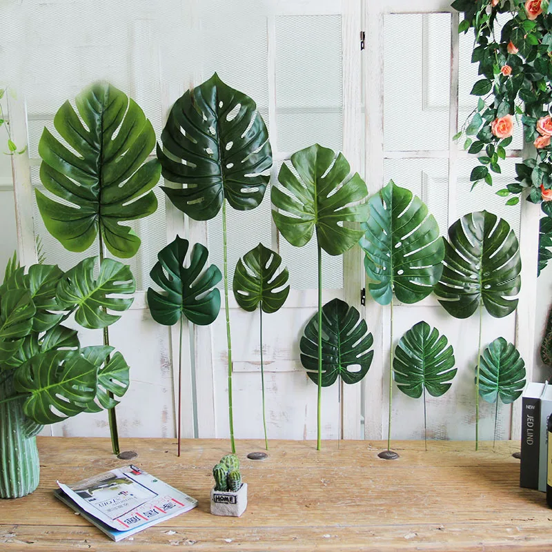 Большие тропические искусственные листья пальмы монстеры для украшения дома и сада фон для фотосъемки аксессуары Искусственные растения