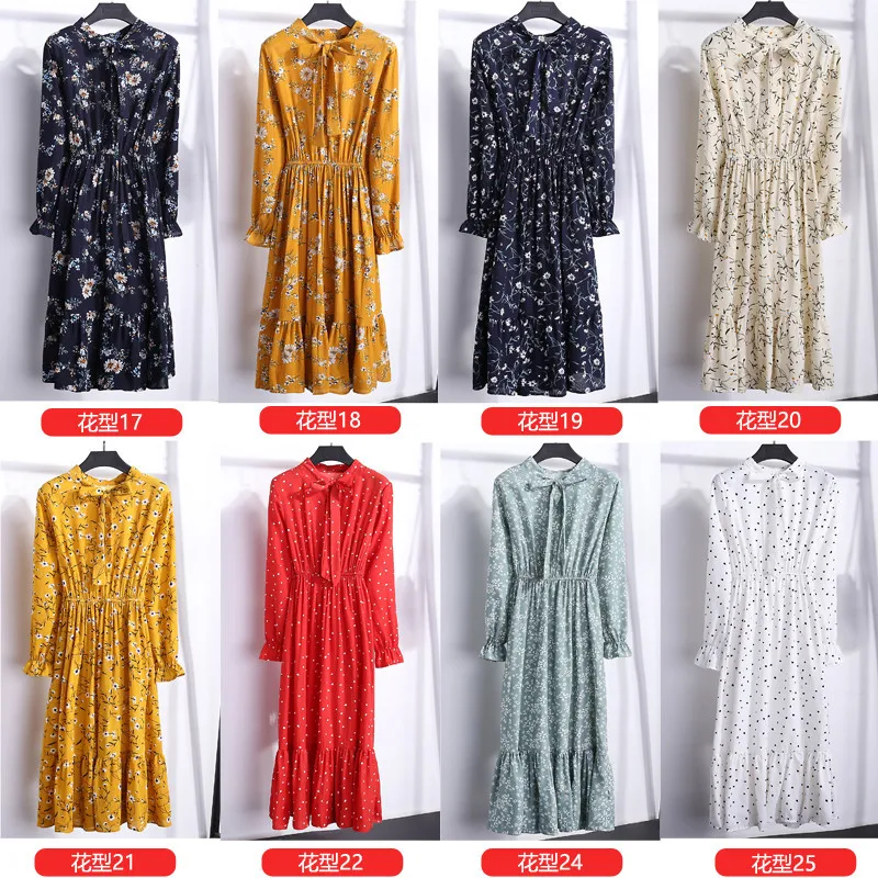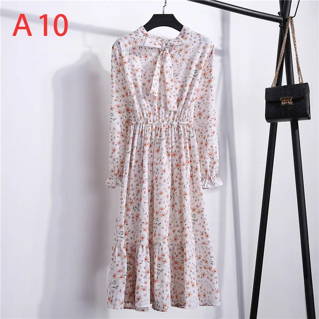 Женское шифоновое платье-рубашка средней длины, повседневное винтаж...