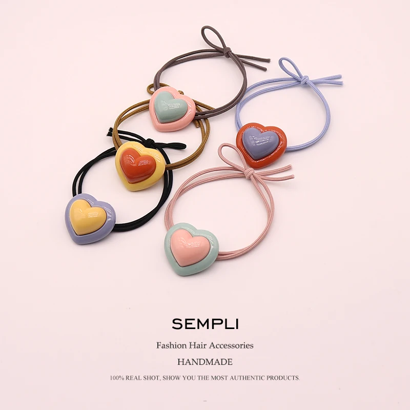 Sempli разноцветные Глянцевые Акриловые резинки для волос, эластичные нейлоновые резинки для волос для женщин, резинки для волос, аксессуары для волос