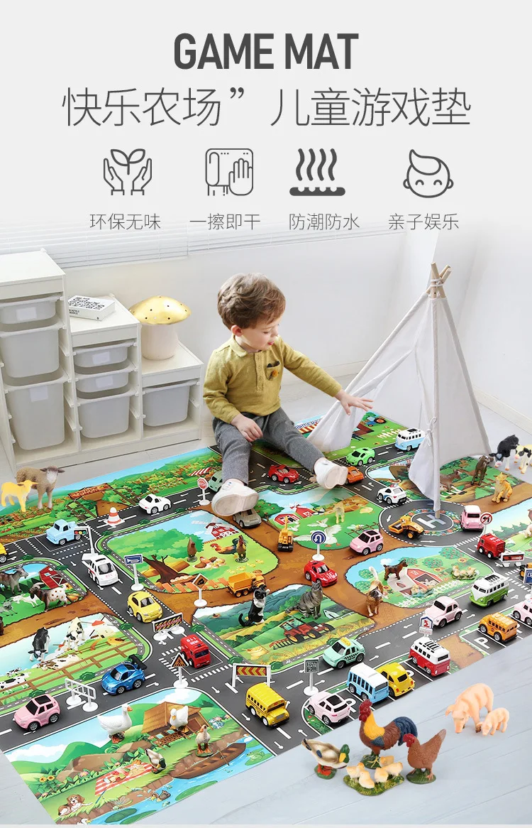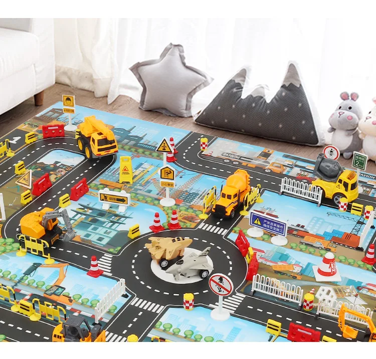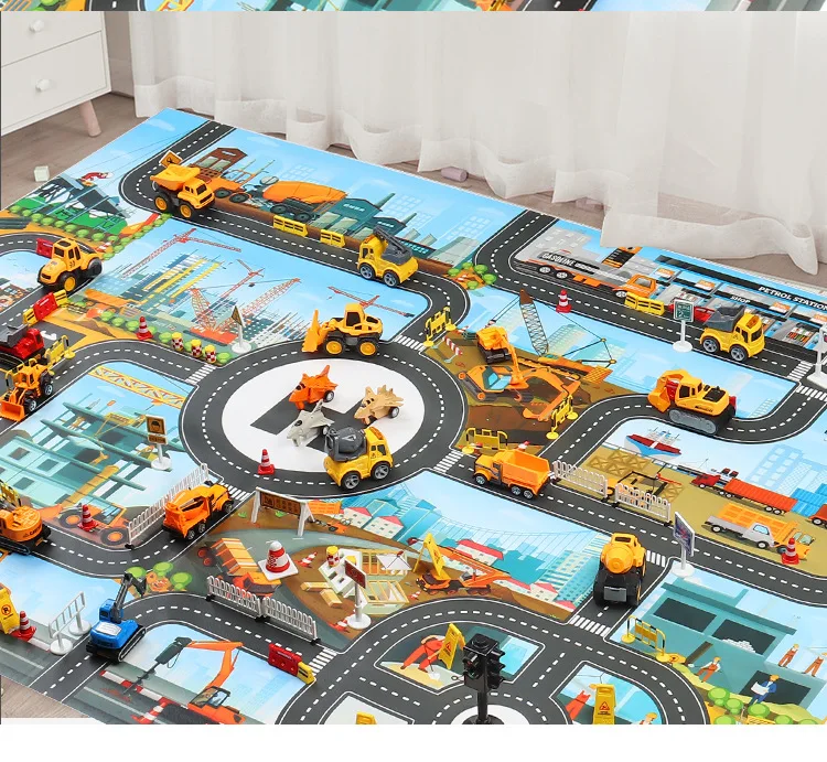 Игровой коврик с дорожным движением, 130*100, водонепроницаемый, Дорожная карта городадорожные знакимодель автомобиля из сплава для детей, развивающие игрушки