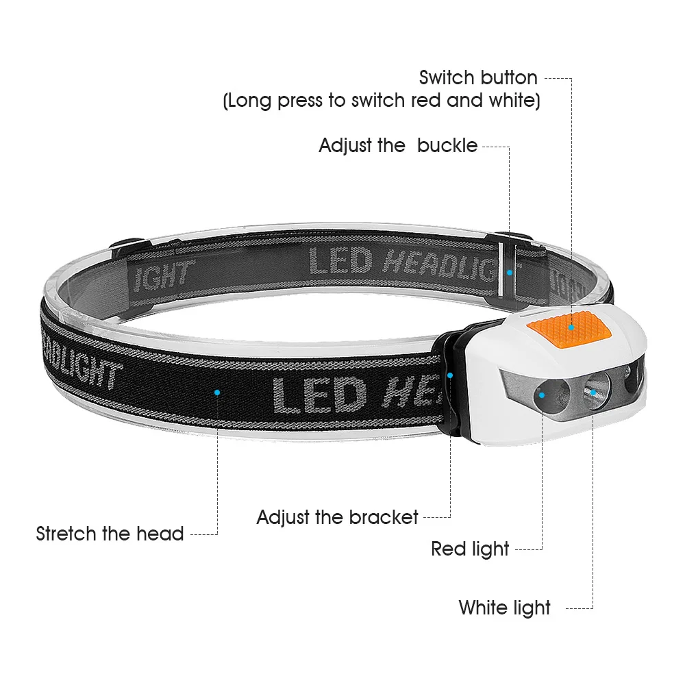 Налобный фонарь, мини-фонарь с питанием от батареек AAA, красный свет, мигающий белый налобный фонарь XBD, светодиодный налобный светильник онарь, аварийный фонарь для ночной рыбалки