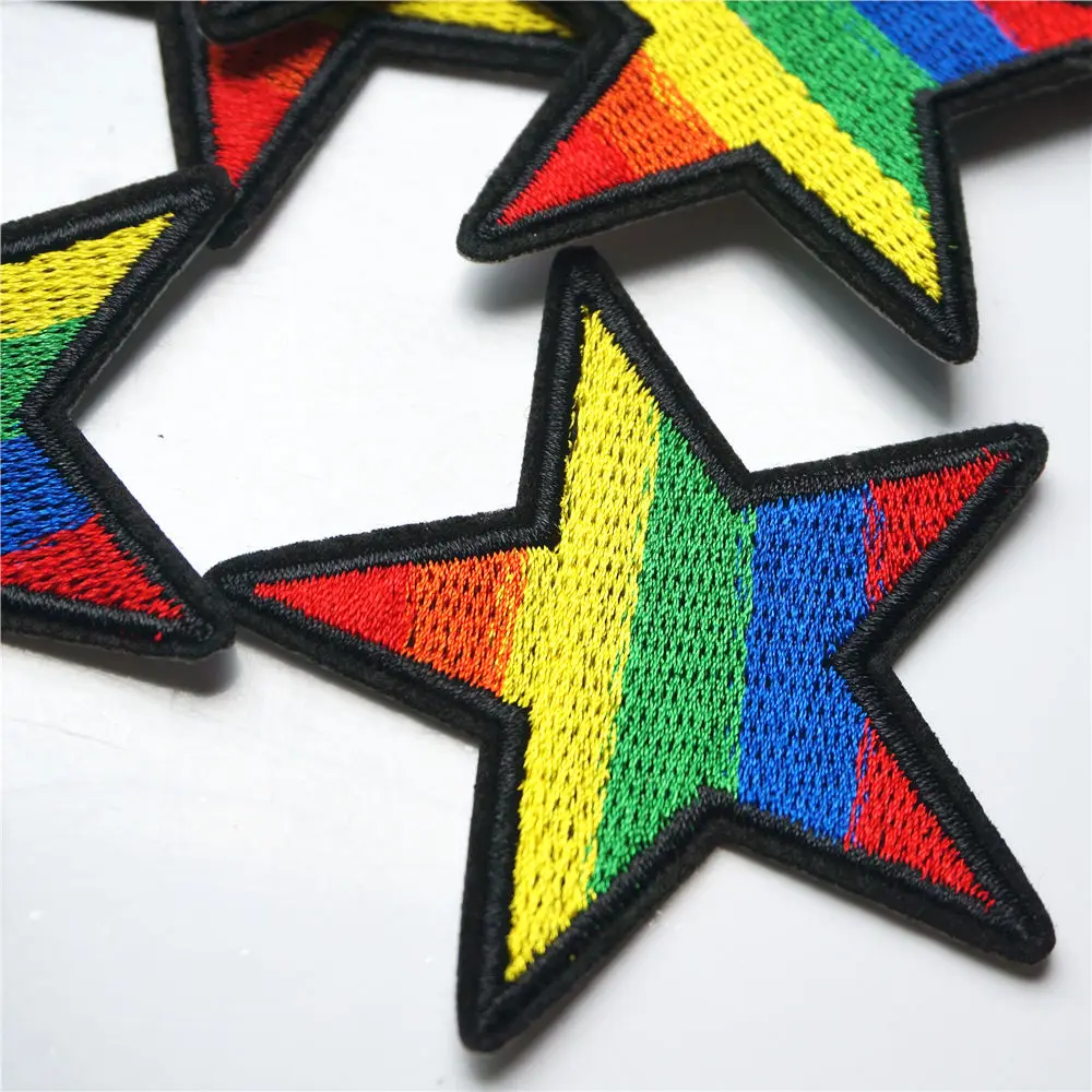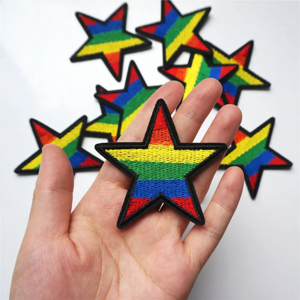 10 шт. разноцветные вышитые радужные звезды, приклеивающиеся значки, 6 см для платья, одежды, аппликации сделай сам, украшение для рукоделия