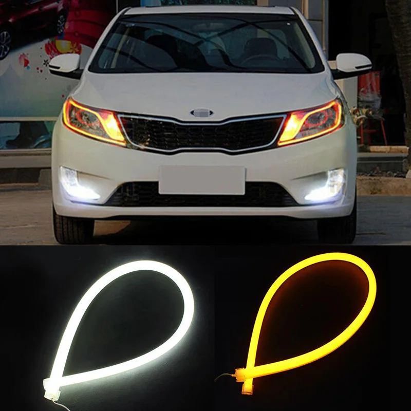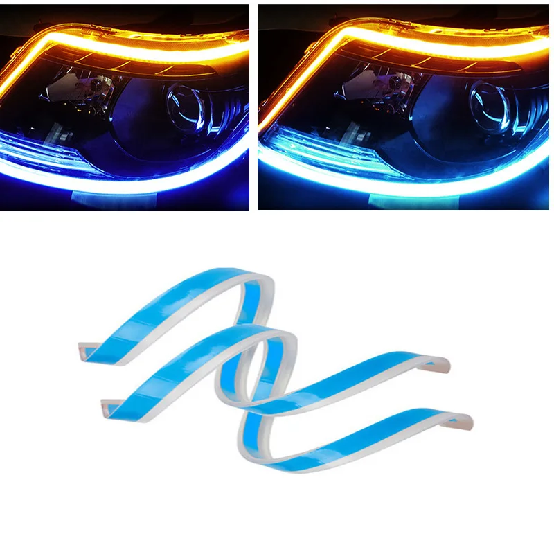 Дневные ходовые огни 2 шт., гибкие ультратонкие водонепроницаемые COB Противотуманные фары, полоса автомобильных указателей поворота, фары, автостайлинг