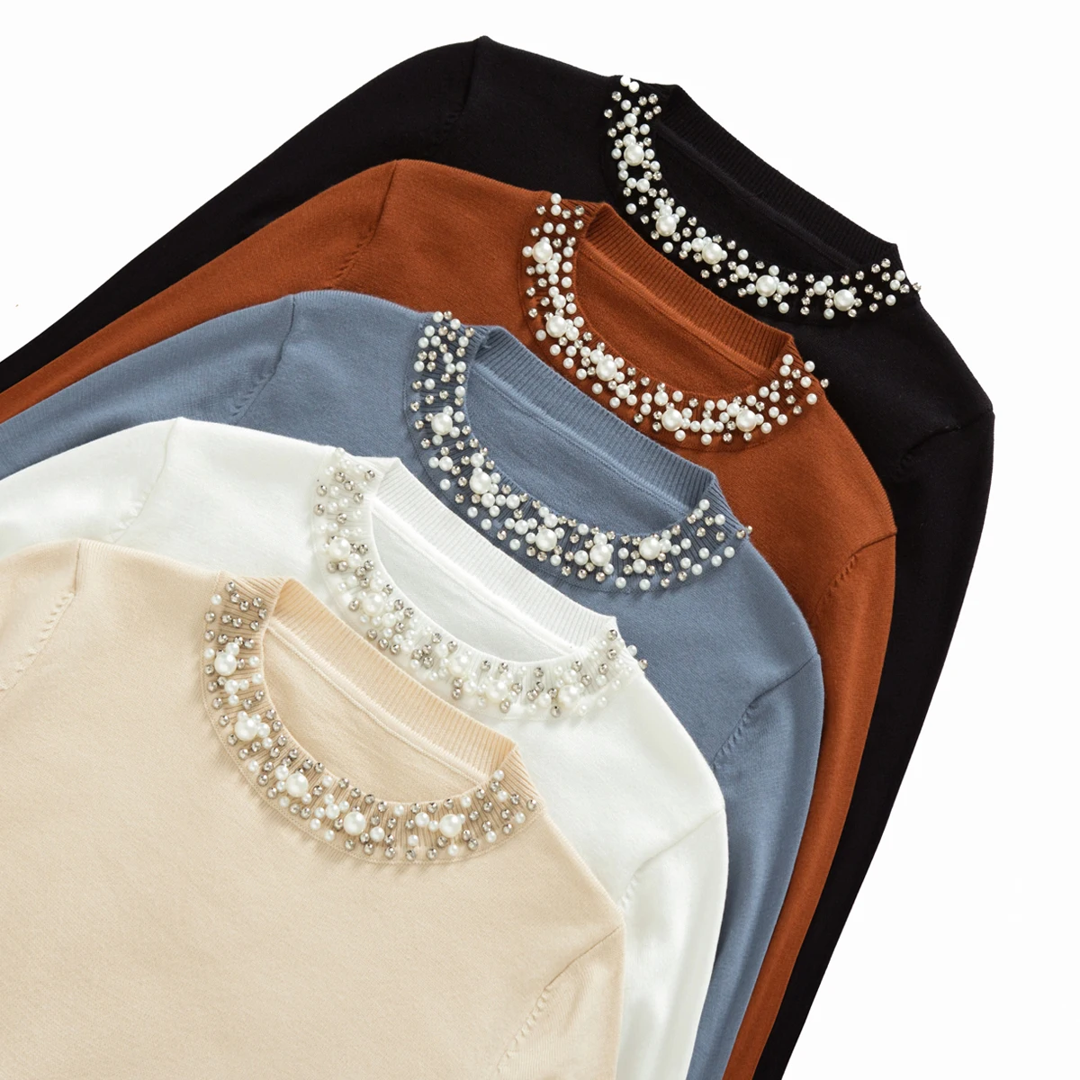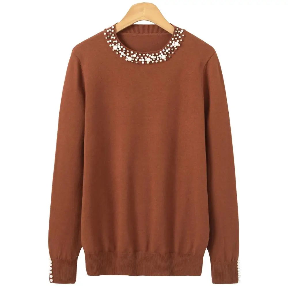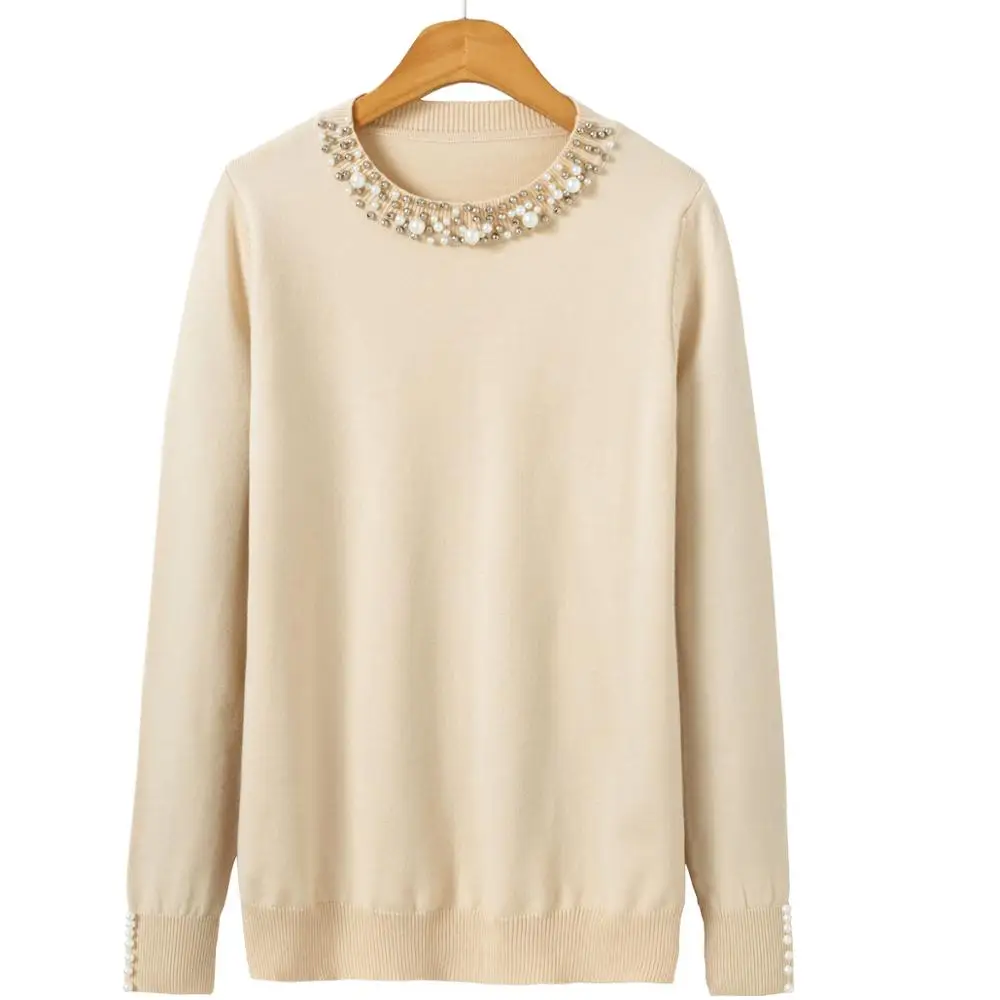 Женский вязаный свитер с жемчужинами, свободный элегантный пуловер с длинным рукавом, мягкий теплый повседневный джемпер на осень-зиму