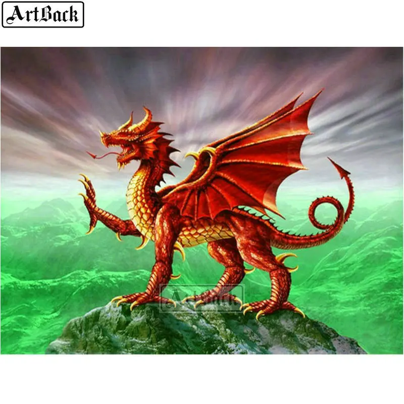 ARTBACK животных 5d diy алмазная живопись зеленый Приморский камни в форме ромба красный наклейка Дракон Стразы Алмазная мозаика украшение дома