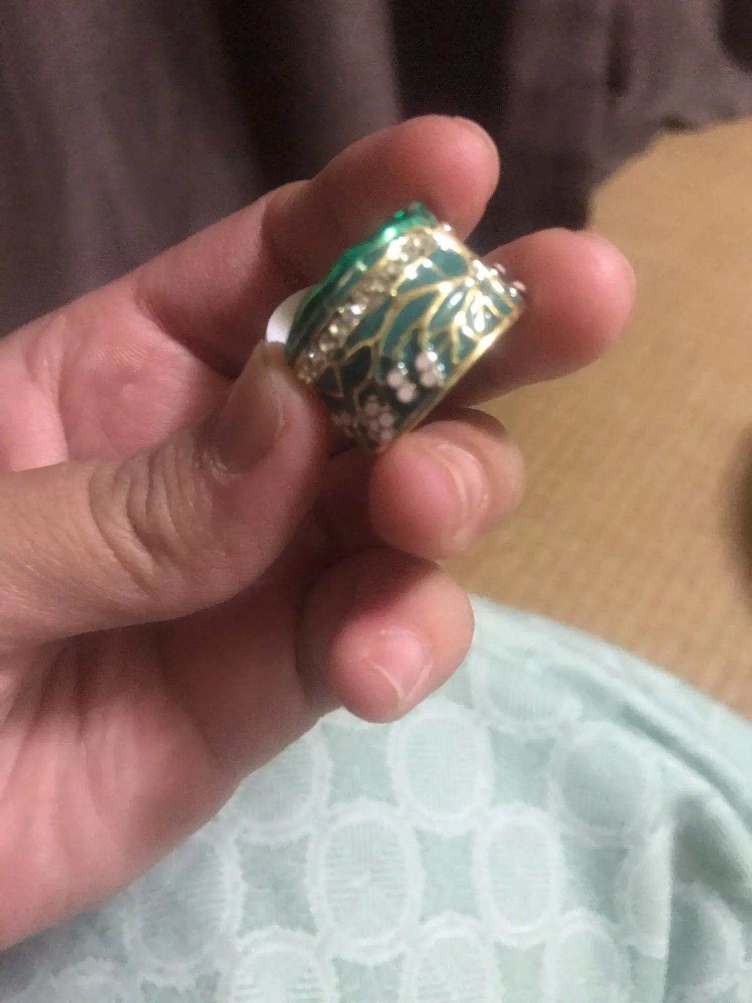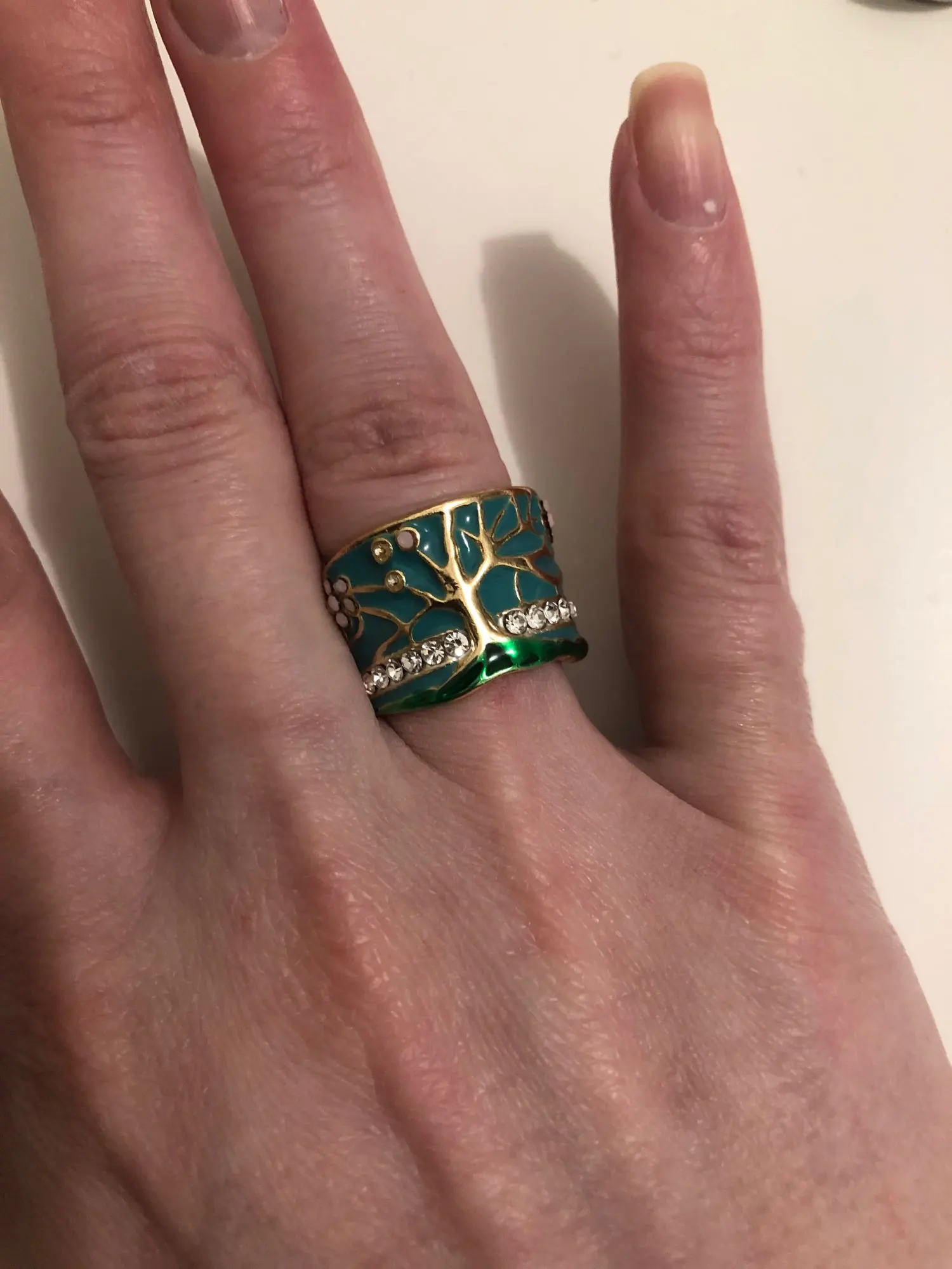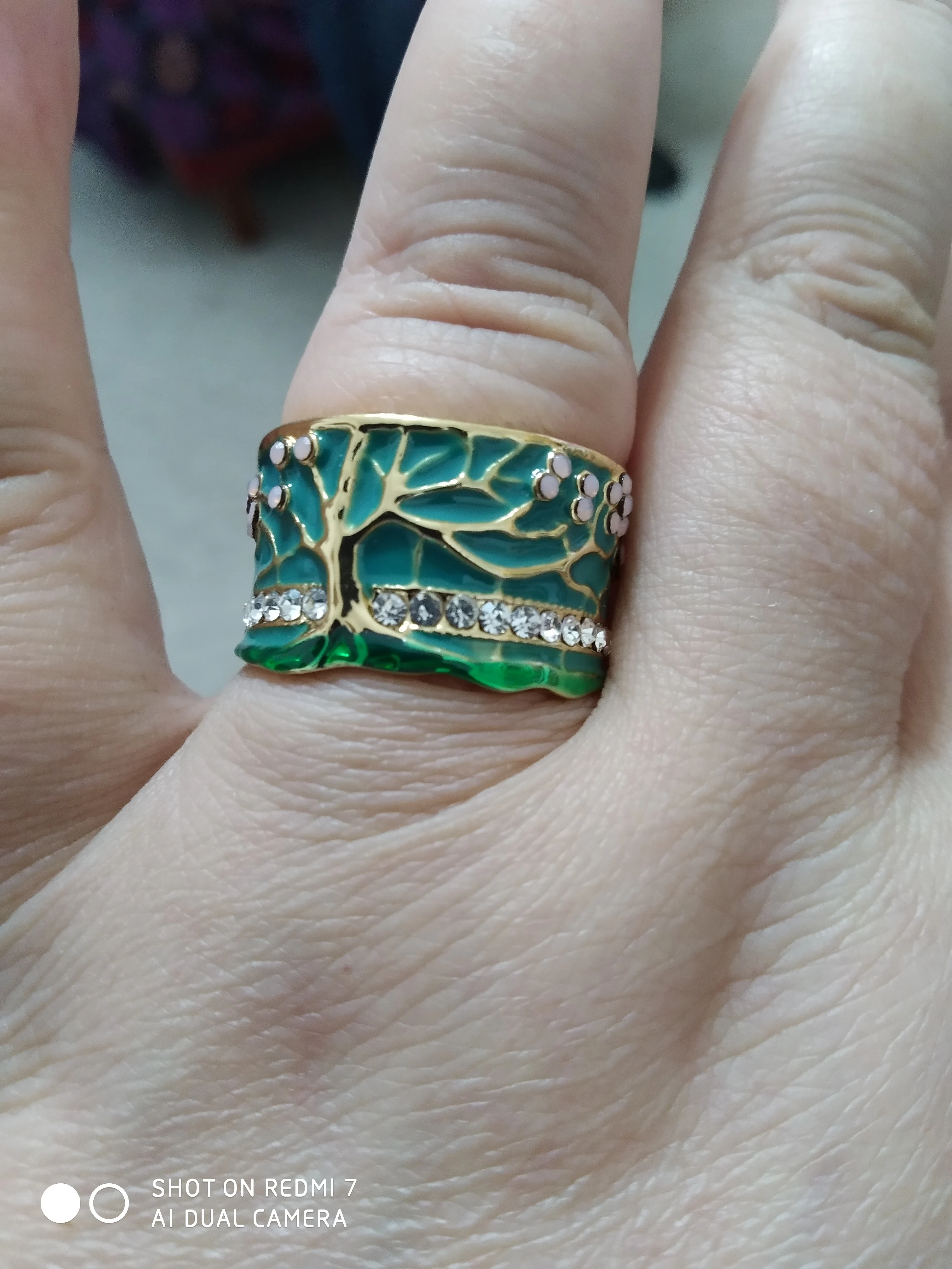 Кольцо смотрится очень эффектно. У моего цвет зеленый, а не бирюзово-голубой, как на фото. Рекомендую товар и продавца!