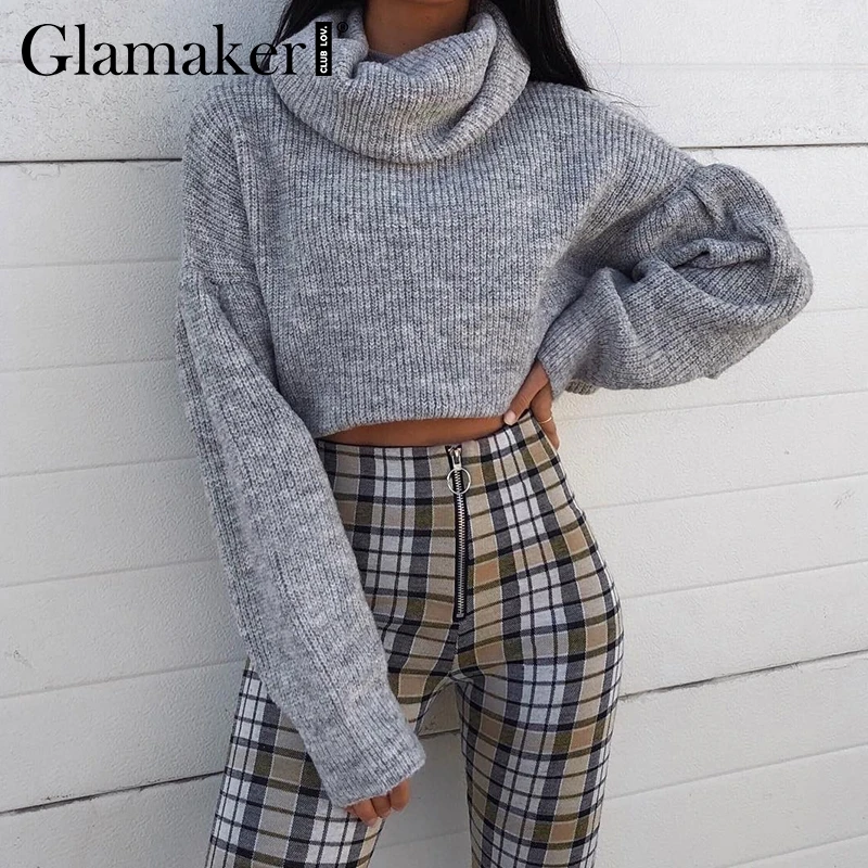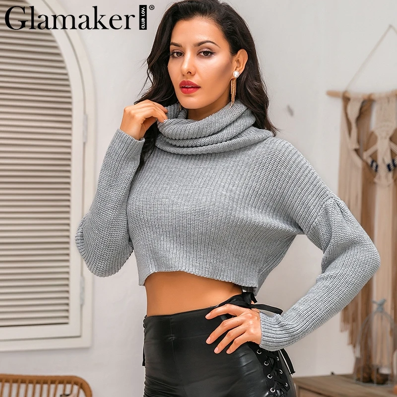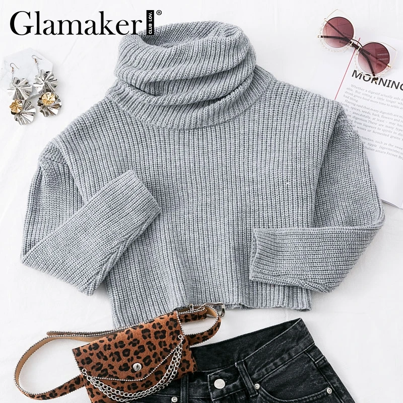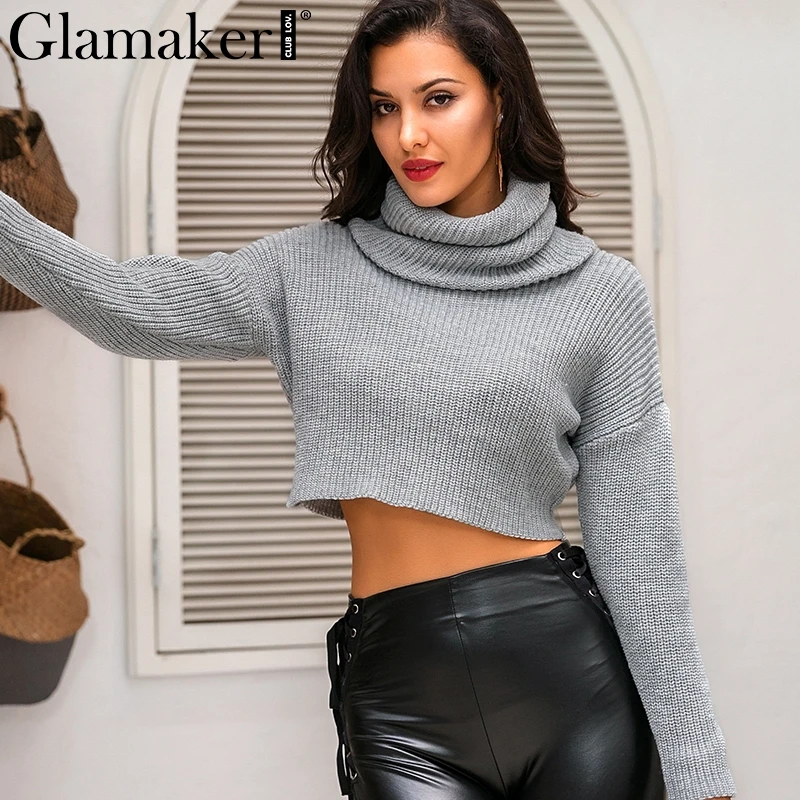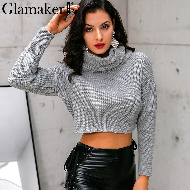 Женский укороченный свитер Glamaker, серый вязаный свитер-водолазка, вязаный пуловер на осень и зиму