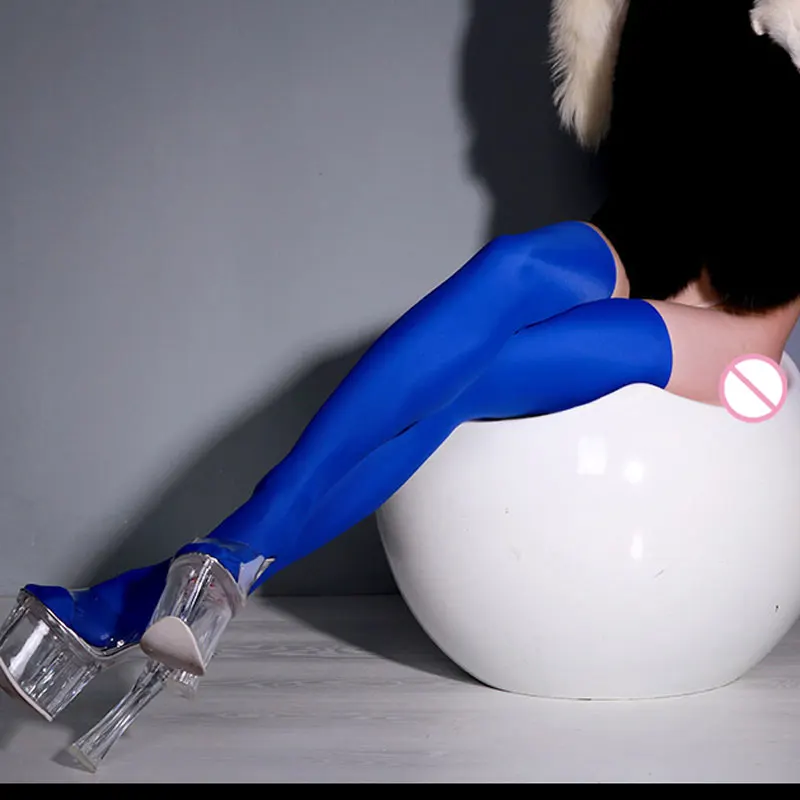 Пикантные для женщин; Большие размеры лайкра блестящие колкоты с высокой чулки, яркие цвета эластичные сапоги над коленом Нескользящие чулки мото клубной сцены одежда F22