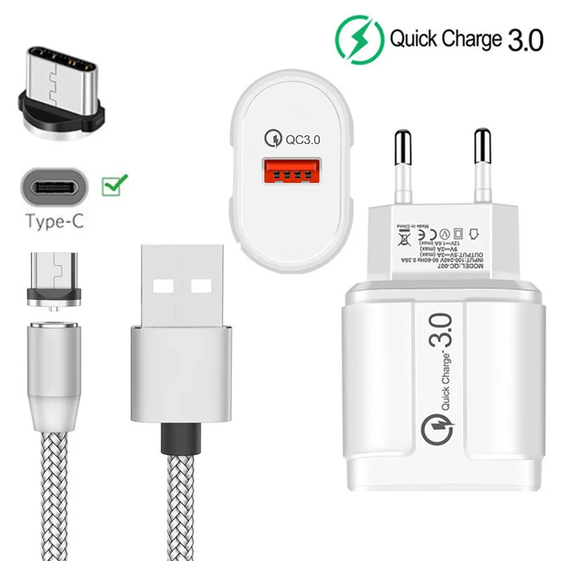 Быстрое зарядное устройство QC 3,0 адаптер Магнитный кабель Micro U...