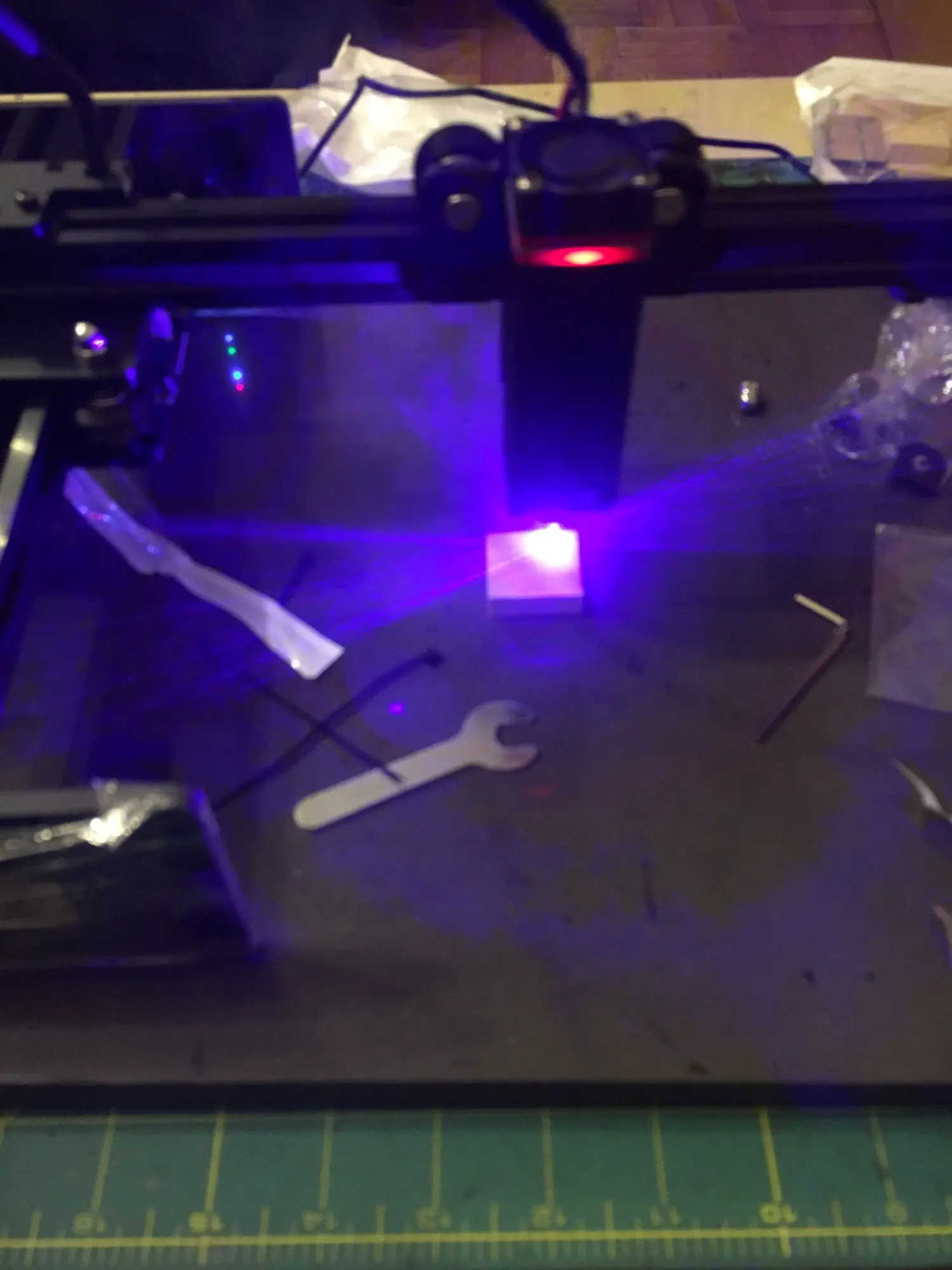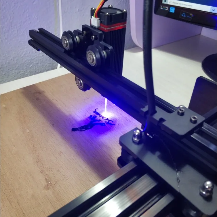 Брал для гравировке по коже. Доволен. Для моих целей достаточно 5-7% мощности. Для резки фанеры необходим дополнительный обдув, чтобы сдувать пепел + дополнительная подача воздуха (кислорода), иначе лазер будет не прожигать внутрь, а пережигать пепел от первого прожига. Я организовал подачу воздуха с пом. компрессора от аэрографа. Были проблемы по подключению через bluetooth - конфликтовали автомагнитола и лазер.