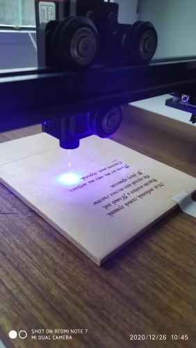 Я аппаратом доволен. Заказал 02.01.2021 пришёл курьером до квартиры 09.01.2021. Сегодня потестил. Качество комплектующих очень приличное. Давольно увесистый. Есть бирка с печатями контроля. Собирается легко. Есть инструкция на русском (гугл переводчик, но в принципе понятно). Хорошо упакован в коробку и мягкий чёрный пенопласт. (Смутило, что коробка закрыта обычным прозрачным скотчем). В комплекте есть тестовые образцы фанеры, картона, пластика и даже чёрный (железный?) жетон. По сборке сразу скажу минус- лазерная голова к пластине крепится всего на 2 болта. Кажется во время хождения голова будет «клевать», но тест показал, что все нормально. Понравилось, что работает даже с фирменного приложения телефона. Для меня важно уметь не использовать комп. Лазер 20w (пиковый импульс?), но номинал 5.5 w. В Принципе для своих целей хватает. Скорость приличная, понравилось сглаживание скорости. То есть при торможении он не останавливается в колы, а останавливается плавно (приложение neje)