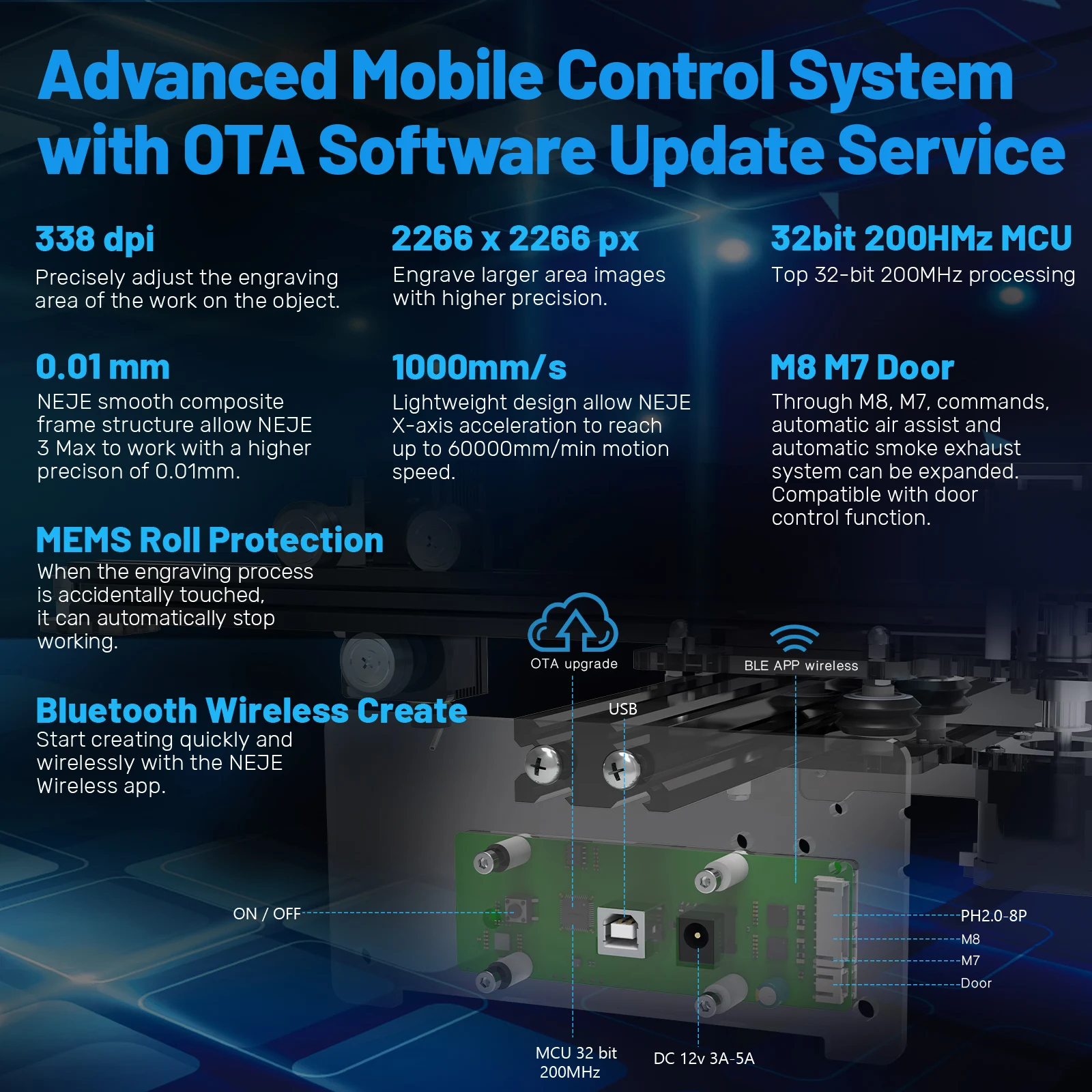 NEJE 3 40 Вт лазерный гравер, 5,5-7,5 Вт Лазерный резак с ЧПУпринтер, 3D деревянный маршрутизатор