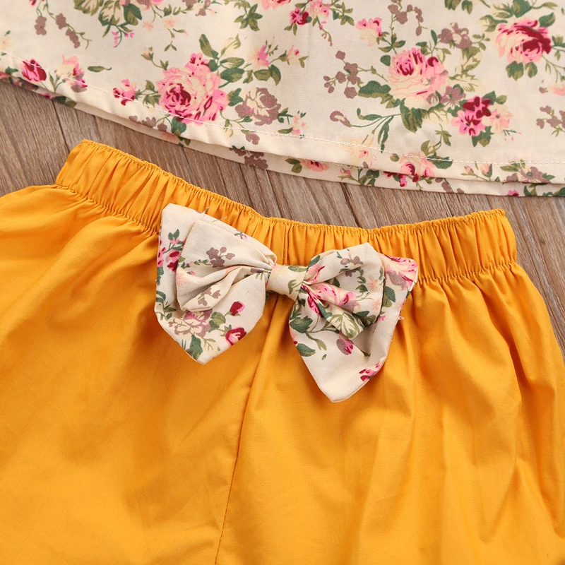 Комплект из 2 предметов, топы с цветочным рисунком для маленьких девочек + шорты