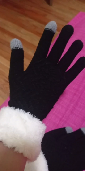 отличные перчатки, теплые, красивые, удобные, прекрасно садятся на руку, хорошо тянутся, покупал жене но и на мою руку плотно но сели, кончики пальцев черного цвета для работы с сенсорными экранами. доставка быстрая, качеством довольны! Продавцу успехов.