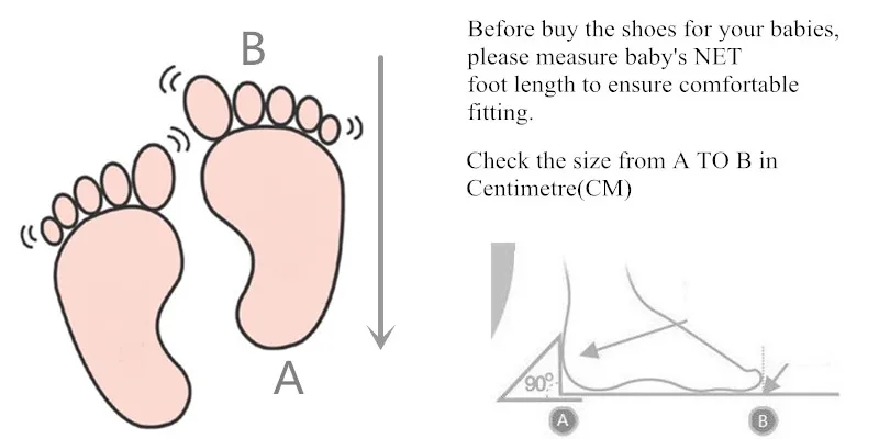 Пожалуйста, измерьте ноги вашего ребенка перед тем, как вы покупаете обувь. Просьба добавить 1-1,5 см больше, чем у ног.