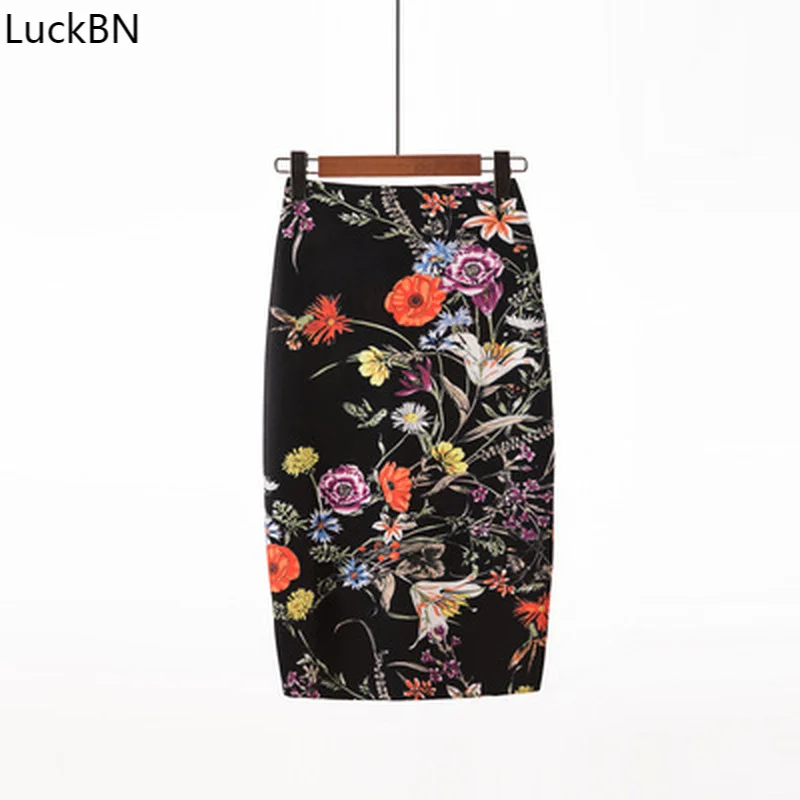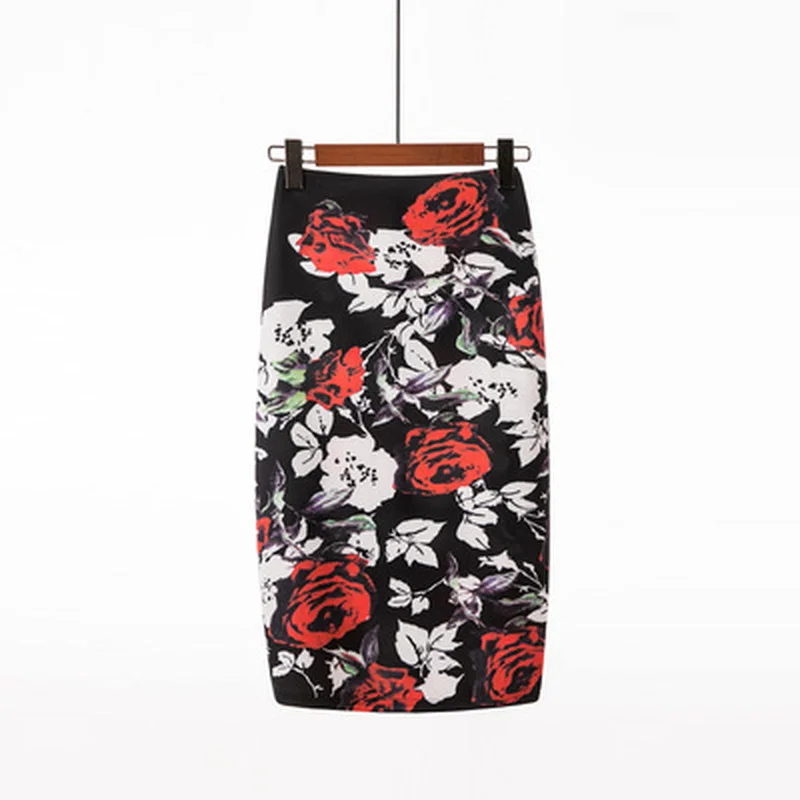 Женские юбки-карандаш до колена, винтажные элегантные юбки с цветоч...