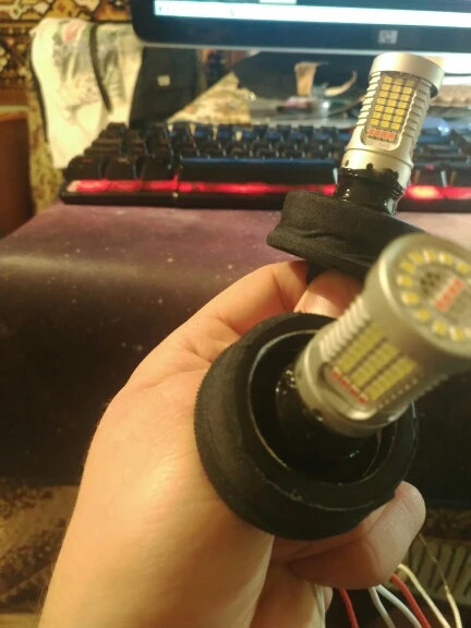 Все работает. Красный какой-то странный как выгоревший, белый конечно очень яркий. Ток потребления одной лампы в режиме задний ход 1.1А, стоп/птф 0.3А. Смена цветов осуществляется реверсивным подключением питания +-, -+.
