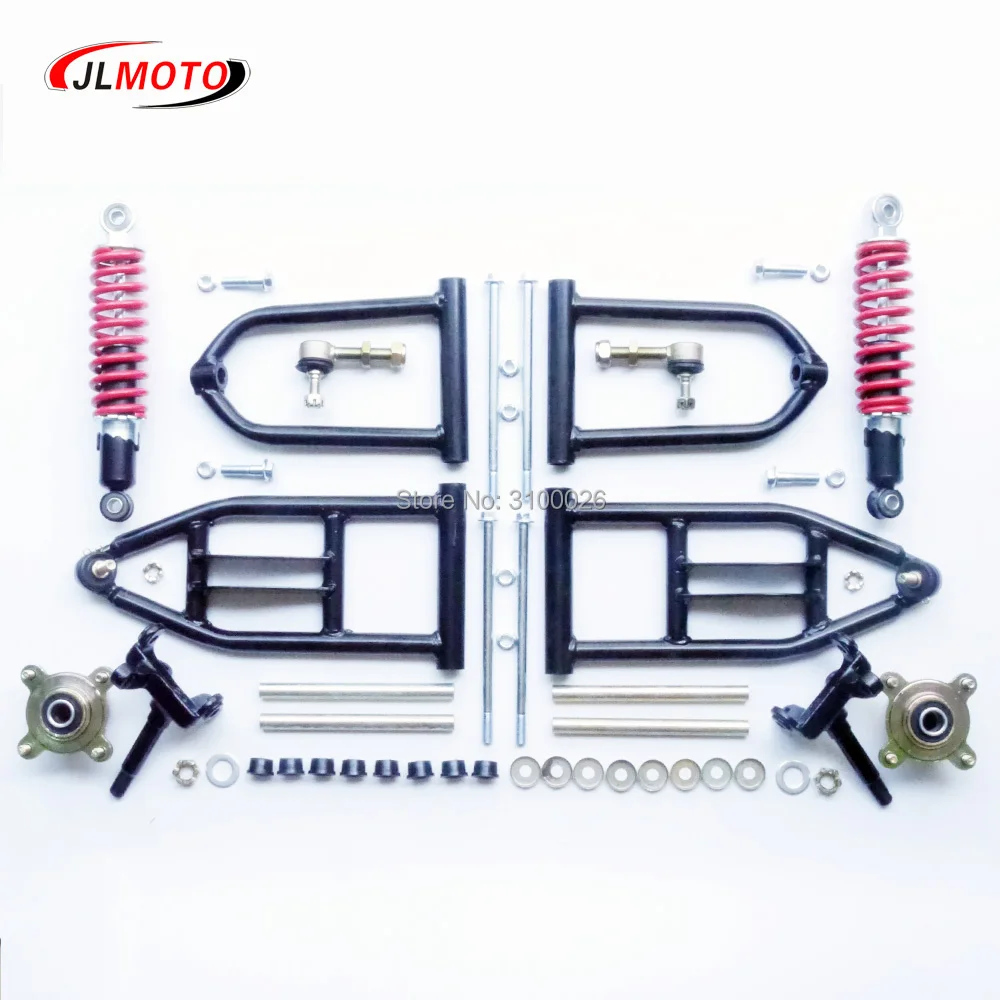1 комплект, поворотный рычаг 340 мм, верхний/нижний рычаг, шпиндель рулевого кулака, амортизатор 250 мм с Тормозным Диском, 4 шпильки, ступица колеса, подходит для запчастей для багги ATV UTV