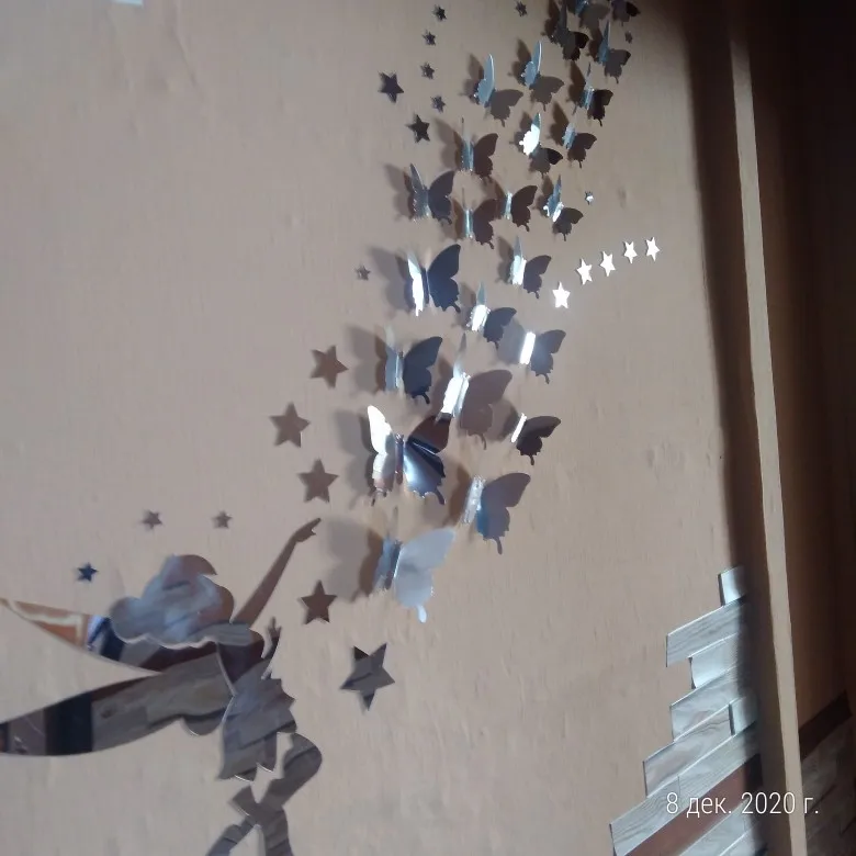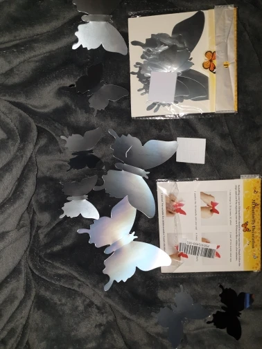 Доставка была осуществлена до назначенного времени. Бабочки дают хороший эффект, и в дополнение к цвету, который вы выбираете, можно использовать боковую часть серебристого цвета. Если двусторонний клей, с которым они прилипают к стене, он был больше, было бы лучше.