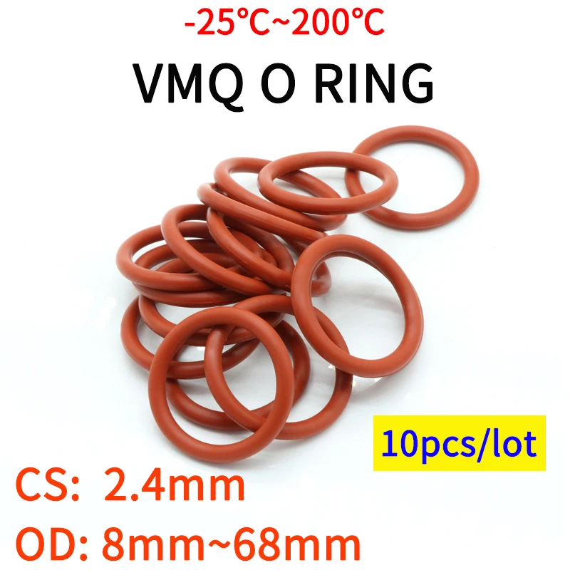 Уплотнительное кольцо VMQ, 10 шт., толщина CS 2,4 мм, OD 8 68 мм, изолированное Силиконовое резиновое уплотнение, водонепроницаемая шайба круглой формы, нетоксичный красный