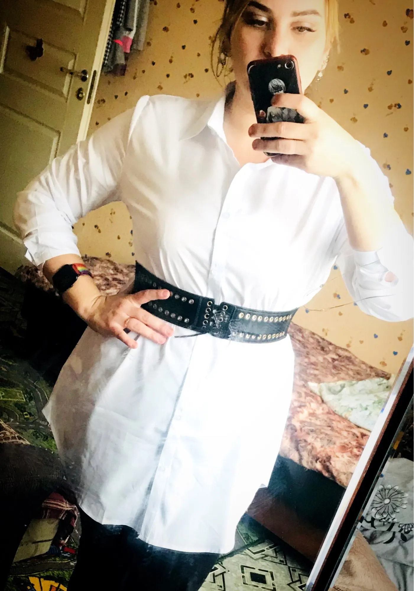 приятная рубашка тонкая. как платье не носила бы. как тунику да. 5xl на 106/96/106 большая с запасом. можно на размер меньше брать 4xl. рост 165. можно рукав делать 2/3 с помощью застёжки на рубашке. рукава не тянут, свободные. можно носить с поясом и жилеткой