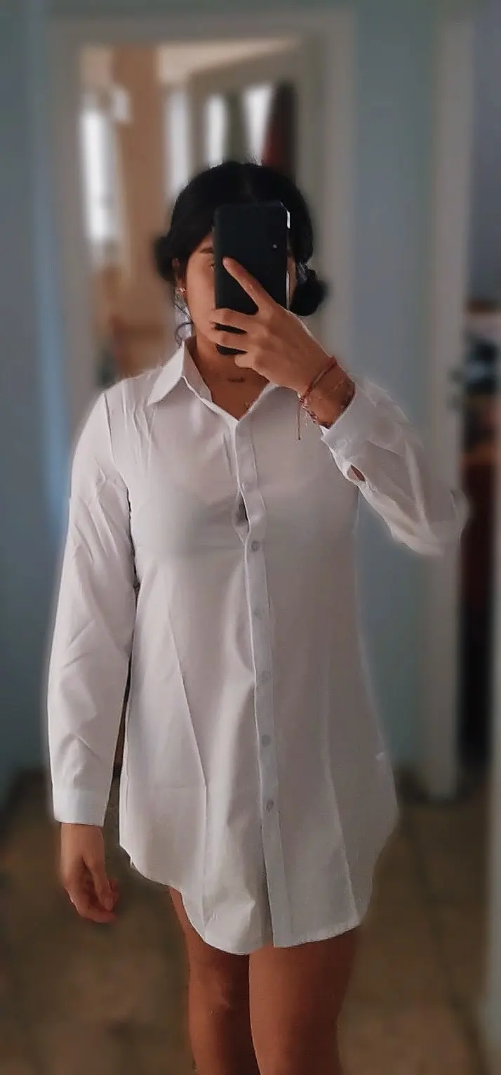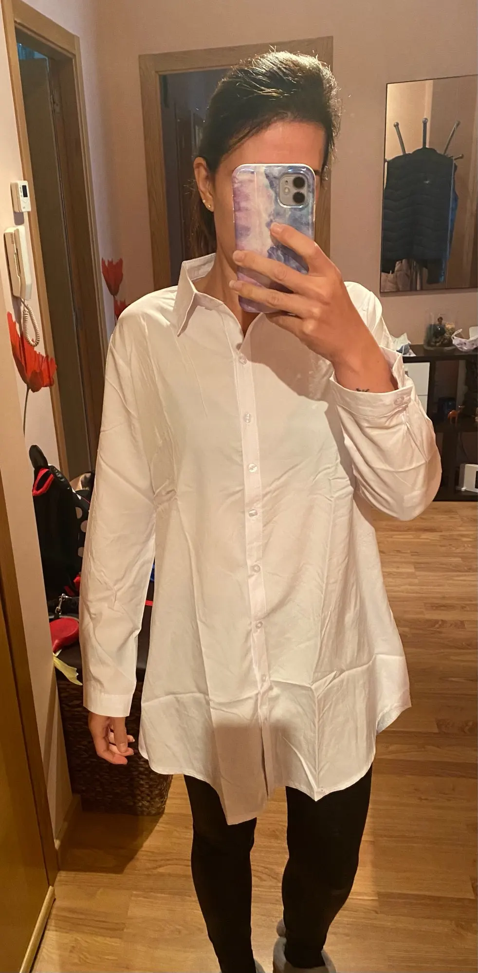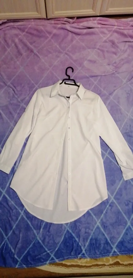 Рубашка пришла за 2,5 недели до Самарской области. Синтетика, но приятная к телу, не как пакет. На свои параметры 89-66-93 (S-M), рост 162 см, взяла размер 3XL, чтобы было посвободнее и подлинее. Могу точно сказать, что она больше похожа на XL. Хотела носить с жилетами, как платье, и по длине рубашка подходит, приличное мини. Но из-за большого размера проймы рукавов тоже большие, и даже оверсайз жилетка поднимает рубашку подмышками, из-за чего по бокам она становится очень короткой. Носить можно только как самостоятельную вещь, без жилетки, НО для этого рубашка довольно прозрачная. В общем, не знаю теперь как и с чем я её буду носить. Если бы взяла размер меньше, то она была бы короткой. На третьем фото видно, как она заливается. При хотьбе она задирается до белья. Рекомендую для девочек ростом до 155 см.