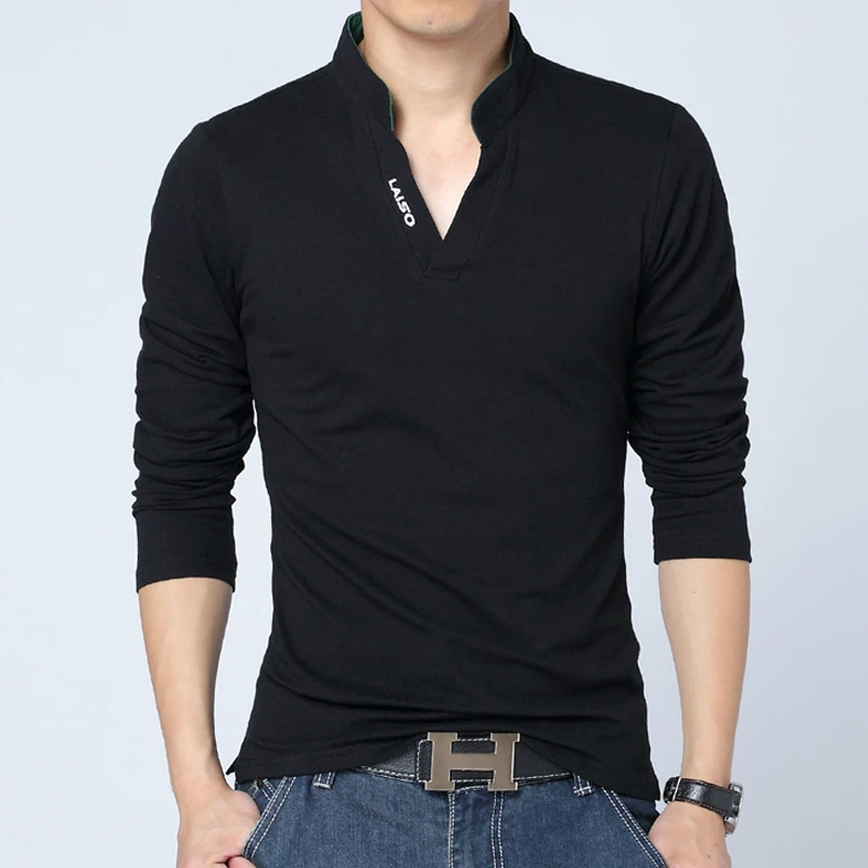 Футболка мужская с воротником-стойкой, модная тенниска из хлопка, брендовая майка Slim Fit, длинный рукав, однотонная, 5XL, 2021